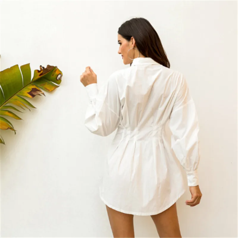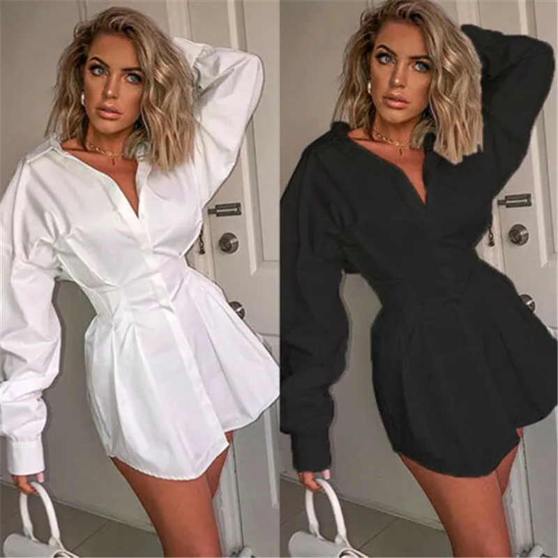 Женское платье-рубашка с длинным рукавом и глубоким V-образным вырезом