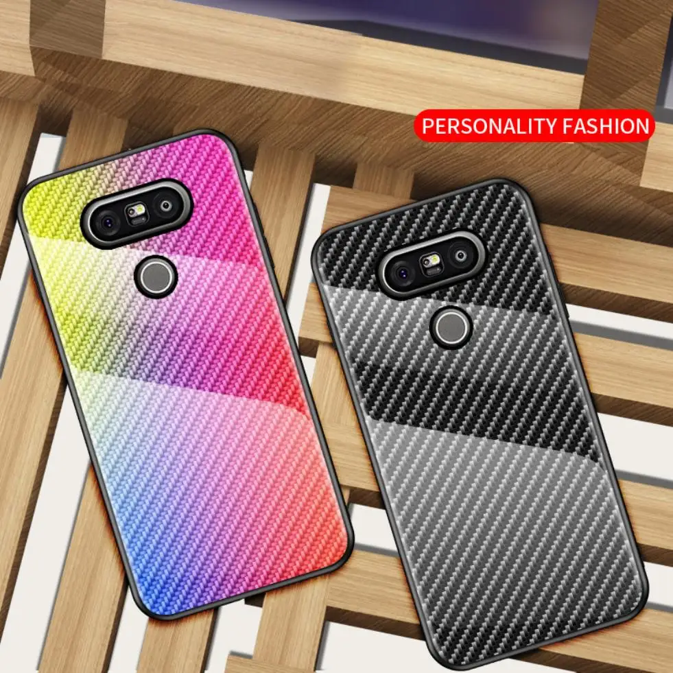 Противоударный чехол из ТПУ для LG G8 G7 ThinQ G6 Plus G5 G5 Se Lite, Модный яркий карбоновый чехол из закаленного стекла для телефона