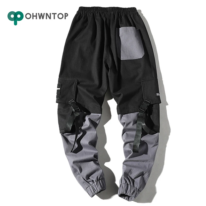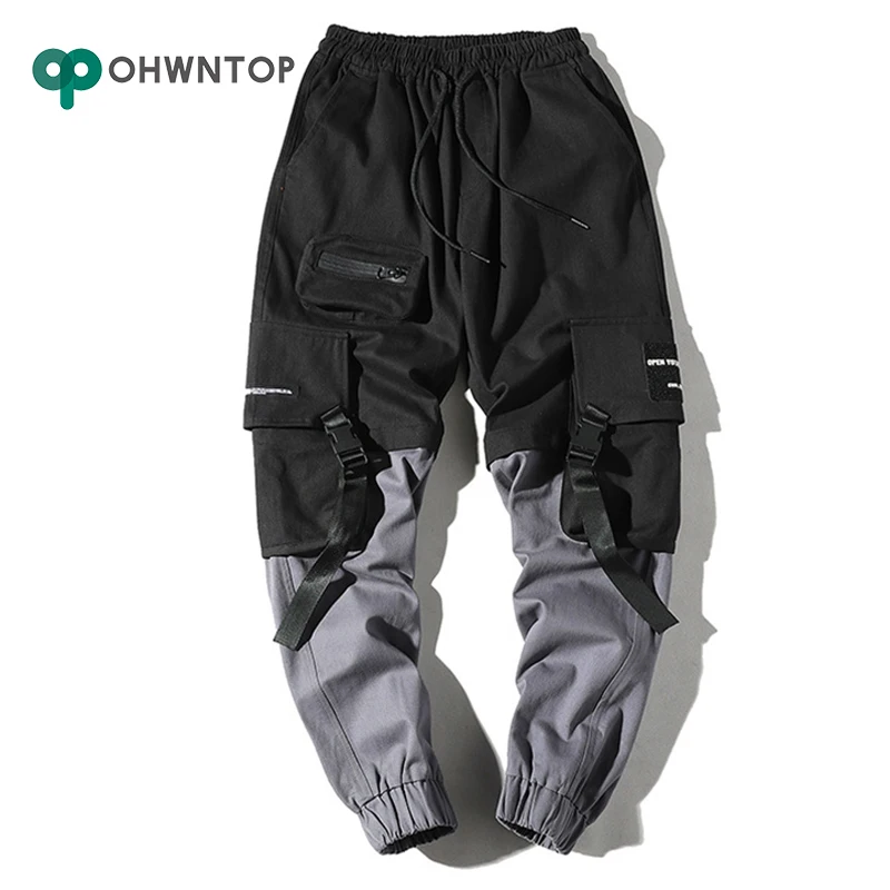 Модные лоскутные брюки-карго, уличная одежда, хип-хоп штаны для бега с лентами, мужские черные повседневные спортивные брюки в японском стиле, мужские брюки