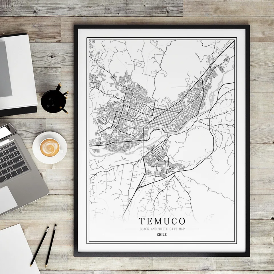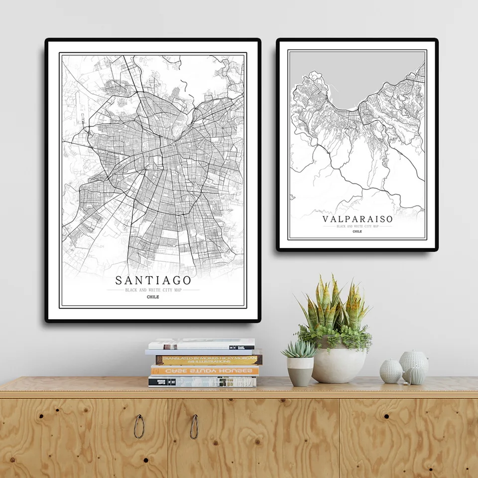 Креативная Карта города, черно-белая Настенная картина, постер, украшение для дома, Чили, абстрактные картины на холсте
