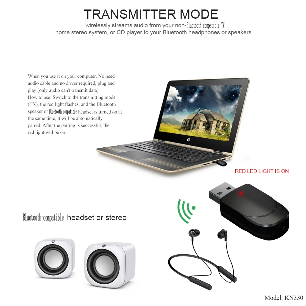 3 в 1 KN330 Bluetooth-совместимый аудиопередатчик 5,0 приемник USB ...