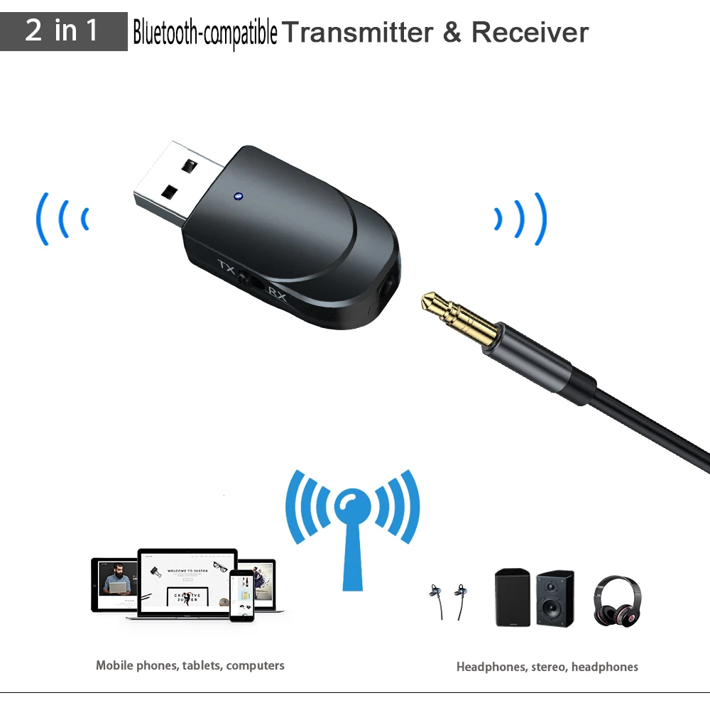Беспроводной музыкальный USB-приемник, совместимый с Bluetooth 5,0, адаптер-ключ, передатчик, адаптер для ПК, домашнего телевизора, автомобильного динамика