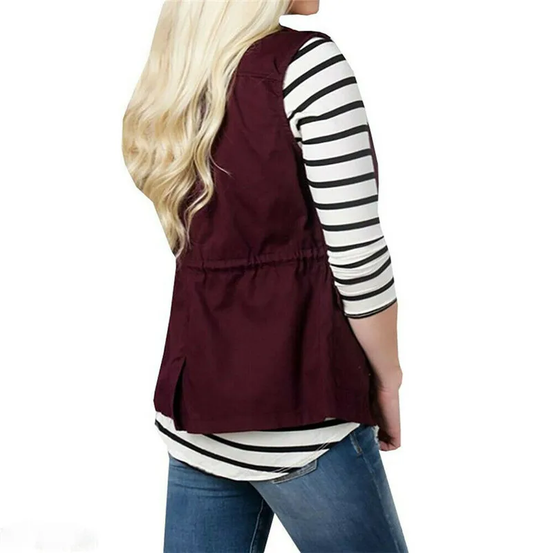 Жилет женский армейский зеленый, с карманами и кулиской, Осень-зима