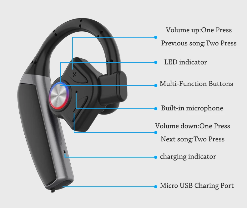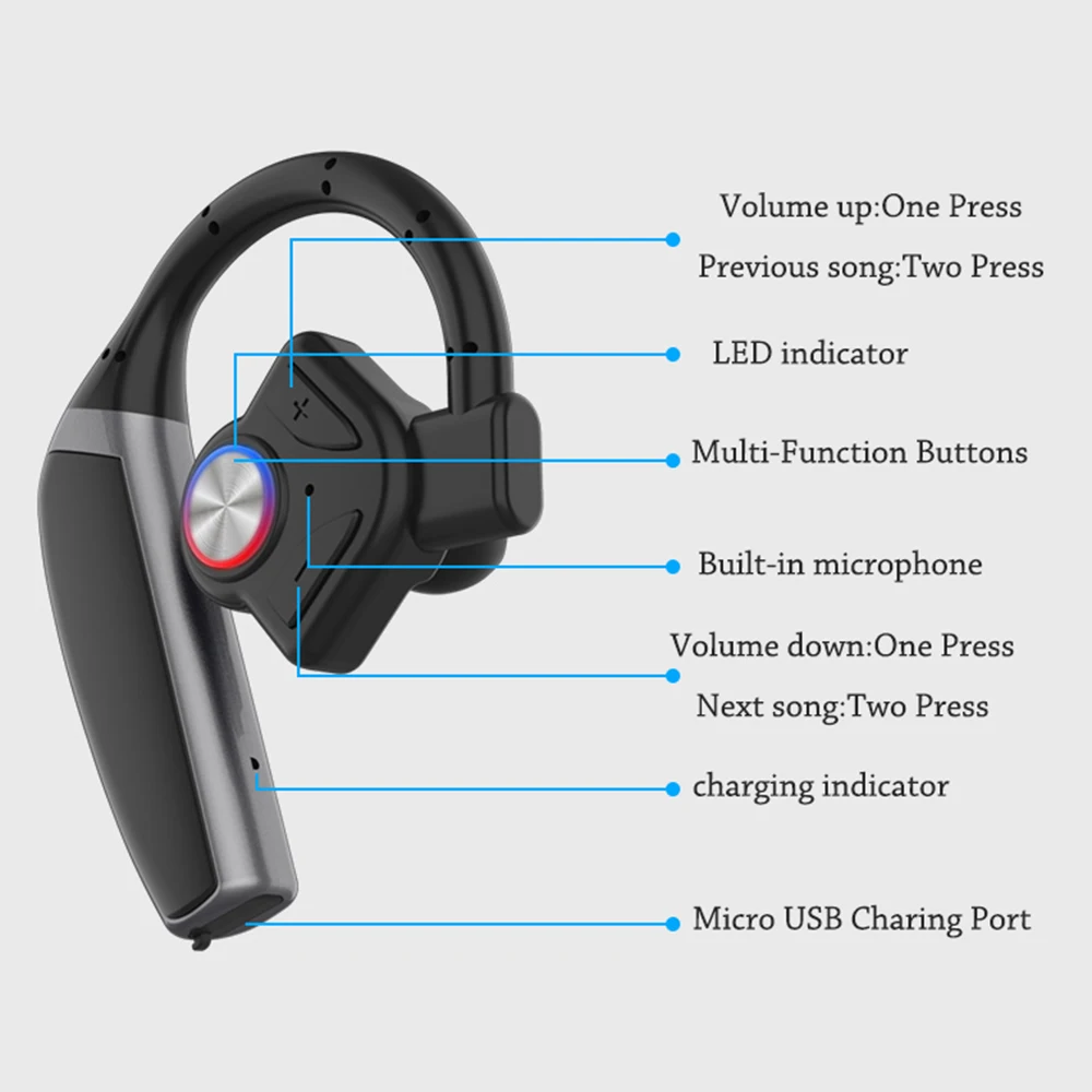 Беспроводные наушники B1 с шумоподавлением, Bluetooth-гарнитура с крючком, 270 мАч, запасная батарея, регулятор громкости