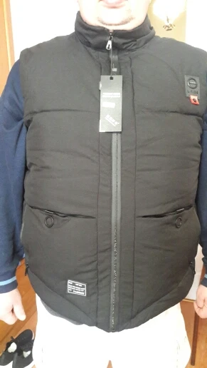 Жилетка отличного качества, нитки не торчат, швы ровные, этикетка по уходу имеется, фурнитура рабочая. Размер 7 ХL на ОГ 120 см и рост 178 см хорошо, кажется что тесновато по фото, но это не так, наполнитель уляжется. Доставка в РБ около двух месяцев. Спасибо за качество и указанную меньшую стоимость. Удачи в рабрте.