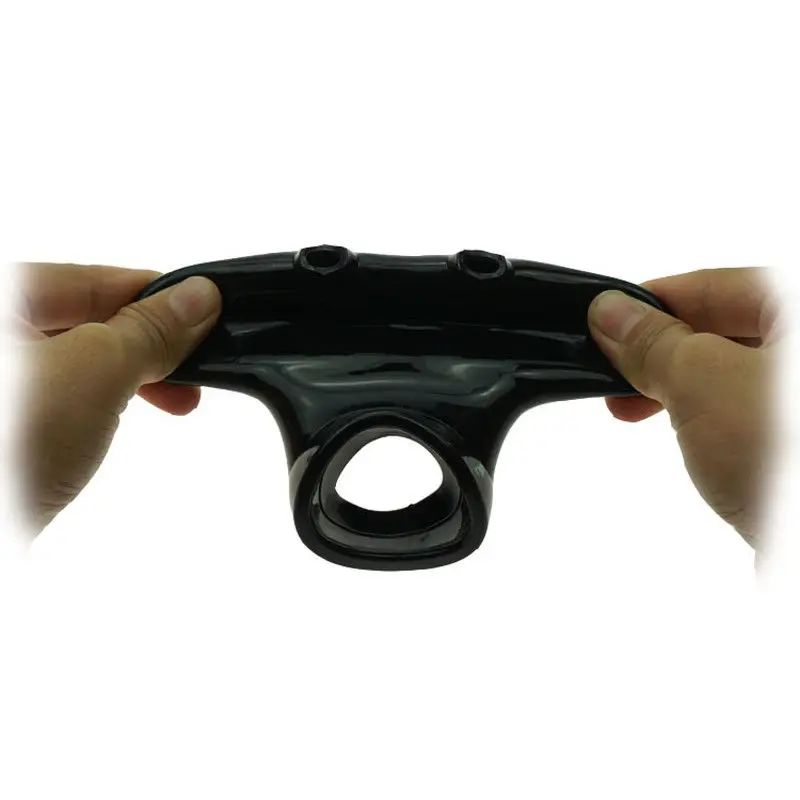 Просто установите пенис через верхнее кольцо и проскальзывайте нижний мешочек над мошонкой.