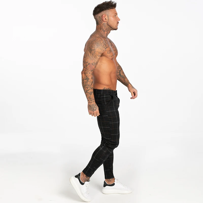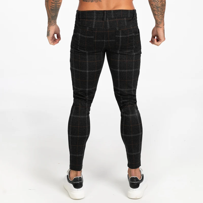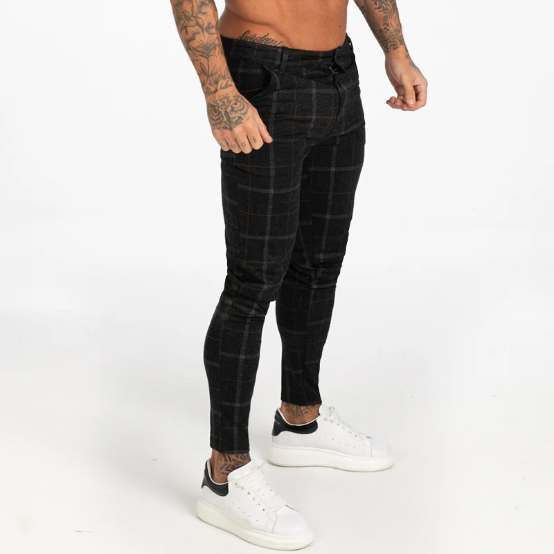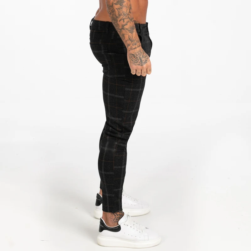 Мужские обтягивающие брюки-Чино GINGTTO, черные клетчатые брюки с высокой талией, zm383, для осени и зимы