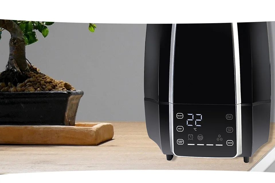 Объём ёмкости для воды рассчитан на 5,6 литра. При расходе до 300 мл воды в час представленное устройство способно увлажнить воздух в помещении площадью до 30 м2. При этом увлажнитель может непрерывно работать без дозаправки продолжительное время.