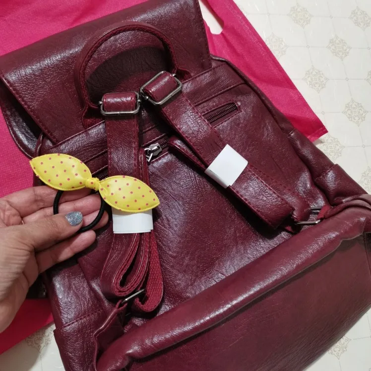 Отличный рюкзачок, лучше, чем я ожидала. Мягкий, вместительный, много кармашков, пошит качественно, без запаха. Резиночка для волос в подарок. Продавцу спасибо. Очень оперативно, 20 дней до Московской области.