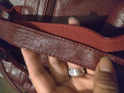 Довольна. Внешний вид хороший! Все строчки ровные. Не кожа, скорее всего, но сделано качественно.