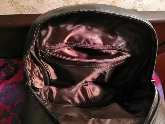 Заказала этот рюкзак себе на сезон осень-зима. И не прогадала. Приехал он в фирменной, светонепроницаемой упаковке. Царапин нет, вся фурнитура целая, молния хорошо застёгивается. Материал натуральная кожа. Внутри много отделений , в т.ч потайных и для ценной мелочевки. Всё внутри хорошо умещается, не сминается