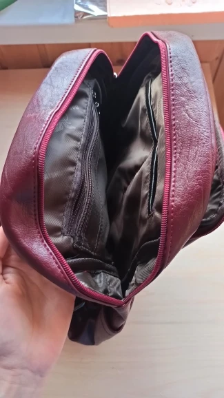 Заказ пришёл быстро. Рюкзак запакован в несколько пакетов, фирменный и с пупырками. Качество рюкзака отличное, кожзам плотный, швы ровные, молнии все рабочие, внутренние карманы прошиты по краям. Цвет как заявлен, очень красивый, винный, темно - вишнёвый, мне очень понравился. Спасибо за качество.