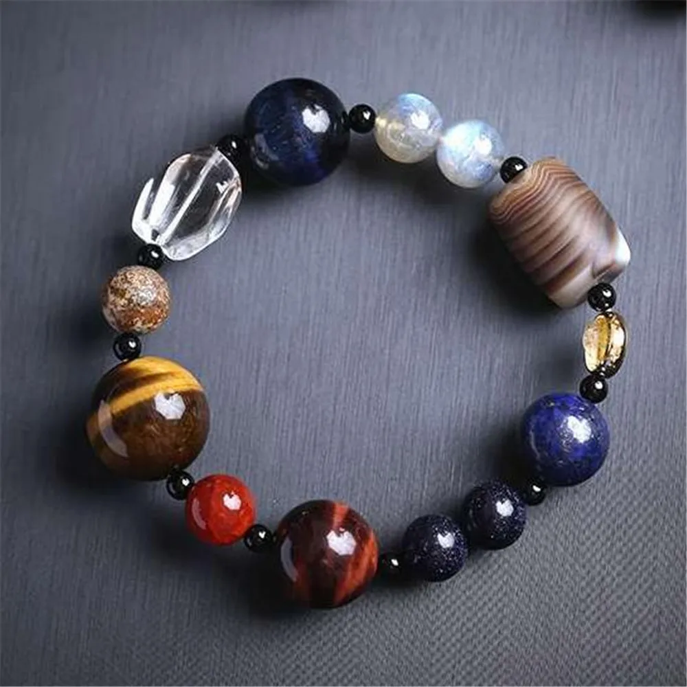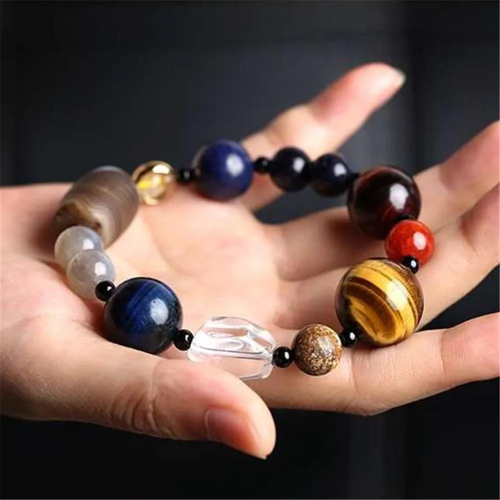 Браслет с имитацией восьми планет, бусины из натурального камня, юв...