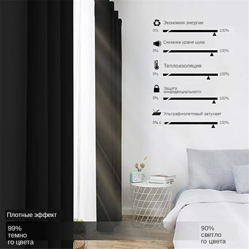 Светонепроницаемые двусторонние шторы для спальни готовые оконные ш...