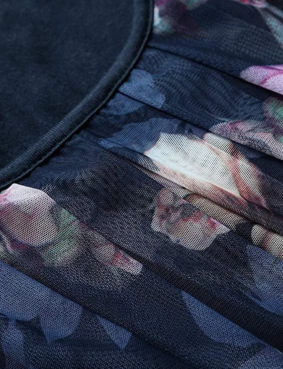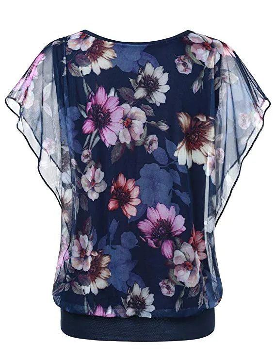 Женская двухслойная блузка, повседневный топ с круглым вырезом и Расклешенным рукавом, с цветочным принтом, размера плюс