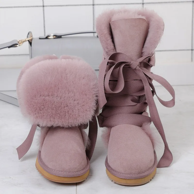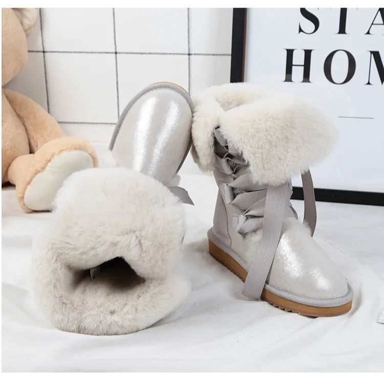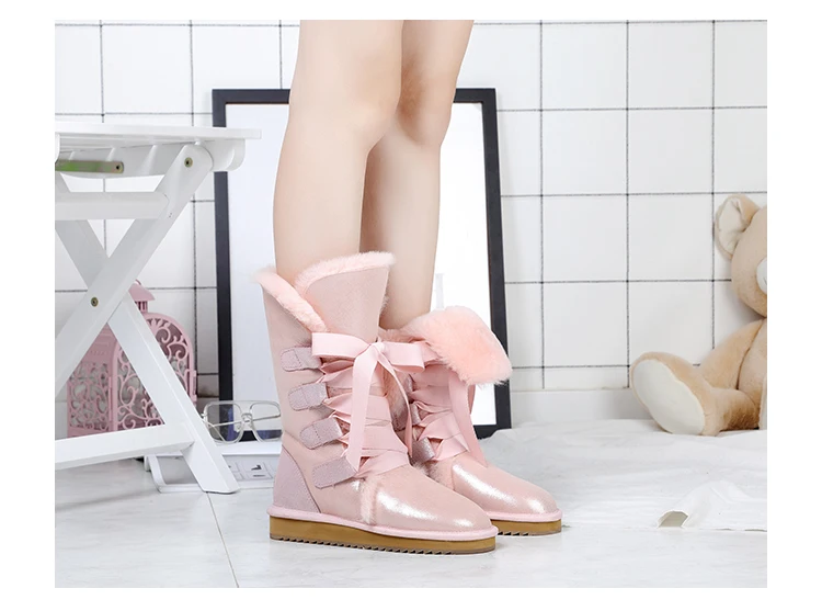 Модные зимние сапоги из 100% натурального меха для женщин, высокие сапоги из натуральной овечьей кожи, зимние сапоги, теплые длинные сапоги из шерсти