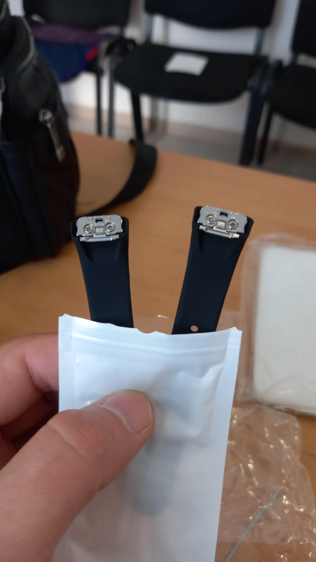 браслет очень хороший. подходит как родной. чут тоньше и короче оригинала, но это совсем не критично. на ощупь приятный, мягкий. пришло за месяц, отслеживалось весь путь.
