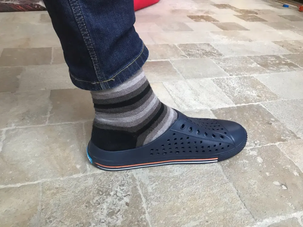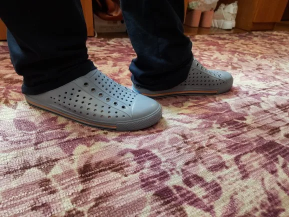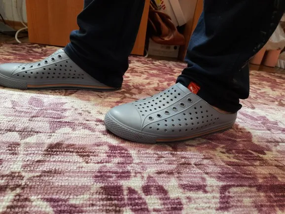 Доставлен товар в Кривой Рог за 20 дней.Получали в( Мистэкспресс).Шлепки выглядят прикольно, на свои деньги.Упаковано в целофанке с замком, и в носки, подкладки для подержки формы. Прибыли не поврежденные. На свои 28,5см., брал 45 размер. Седят точно по размеру. Как проявят в носке, посмотрим?