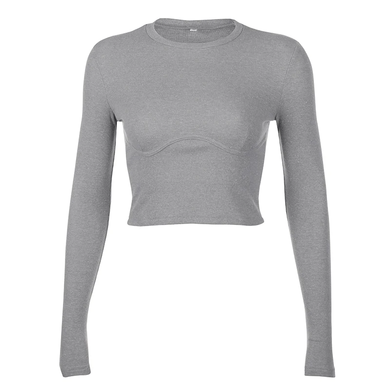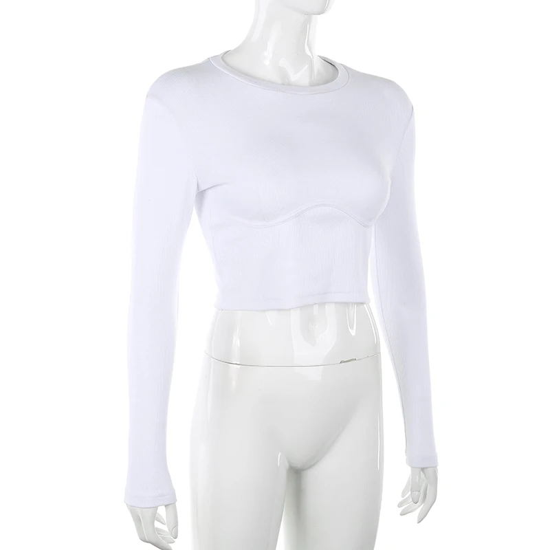 Осенняя белая футболка с длинным рукавом Darlingaga, женские топы, облегающая Базовая футболка в рубчик, повседневный укороченный топ, женская футболка, 2021