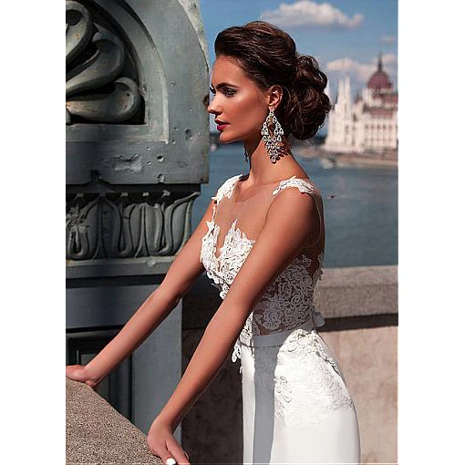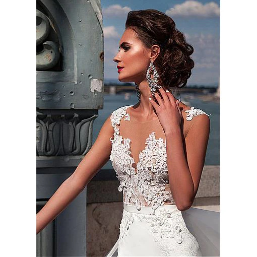 Платье свадебное кружевное из фатина с V-образным вырезом