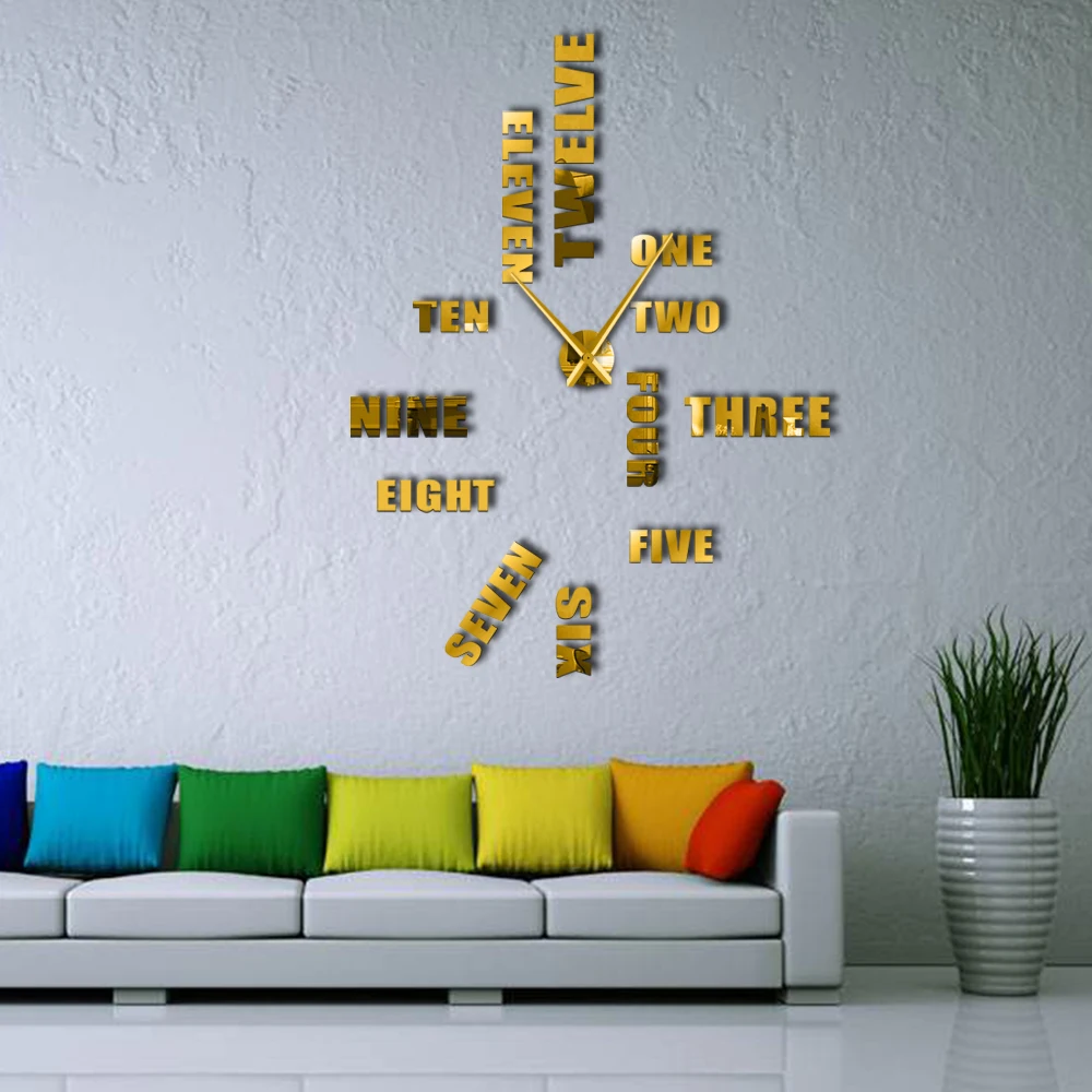 Большие настенные часы с буквами на английском языке, современный дизайн, настенные часы сделай сам, аксессуары для украшения дома, бескаркасные гигантские настенные часы