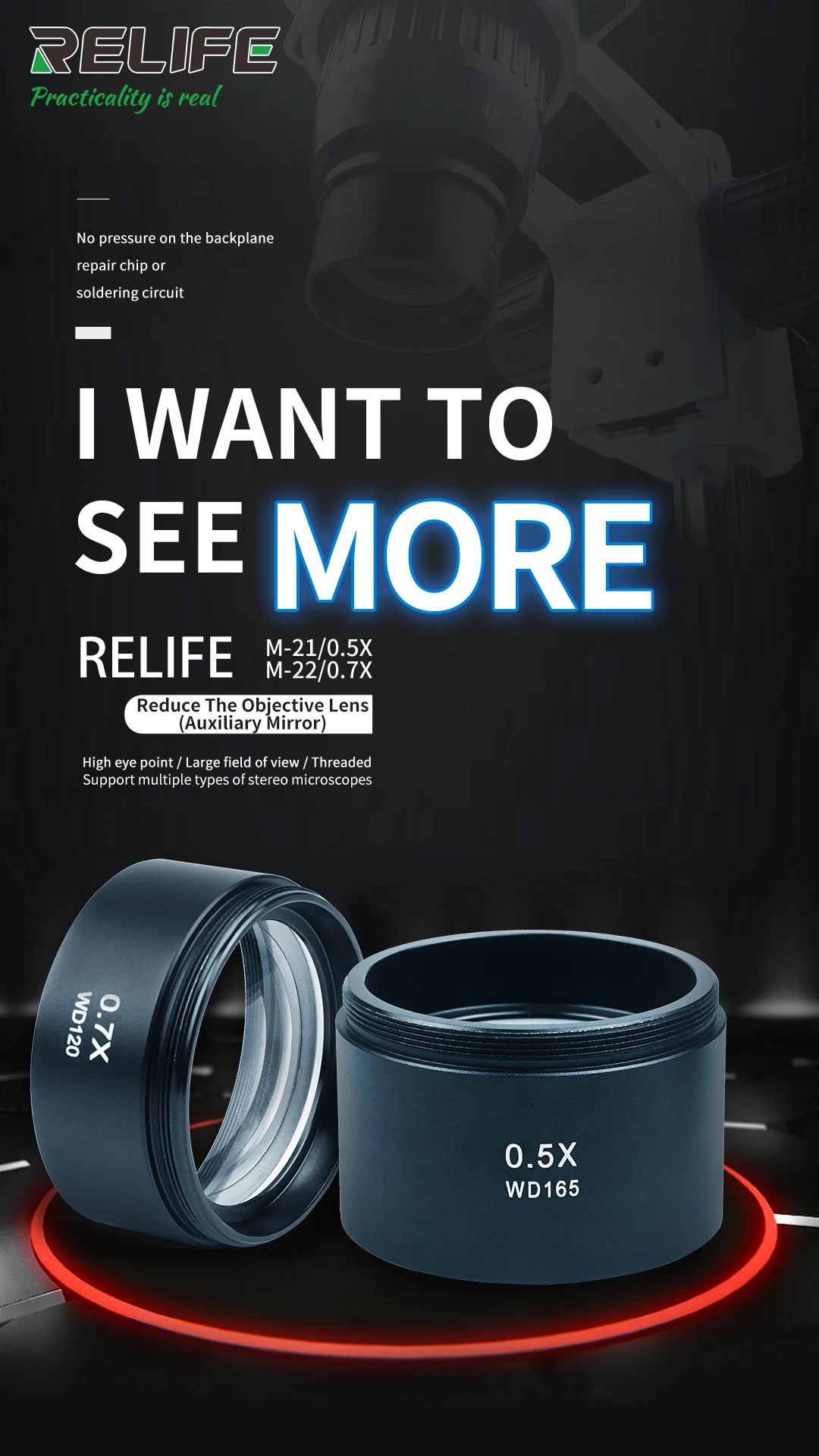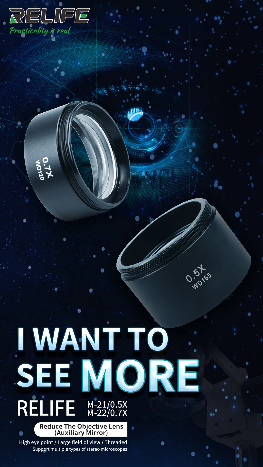 Тринокулярный микроскоп, бинокулярный микроскоп 0,5x 0,7x, Вспомогательный объектив, линза Барлоу с монтажной нитью