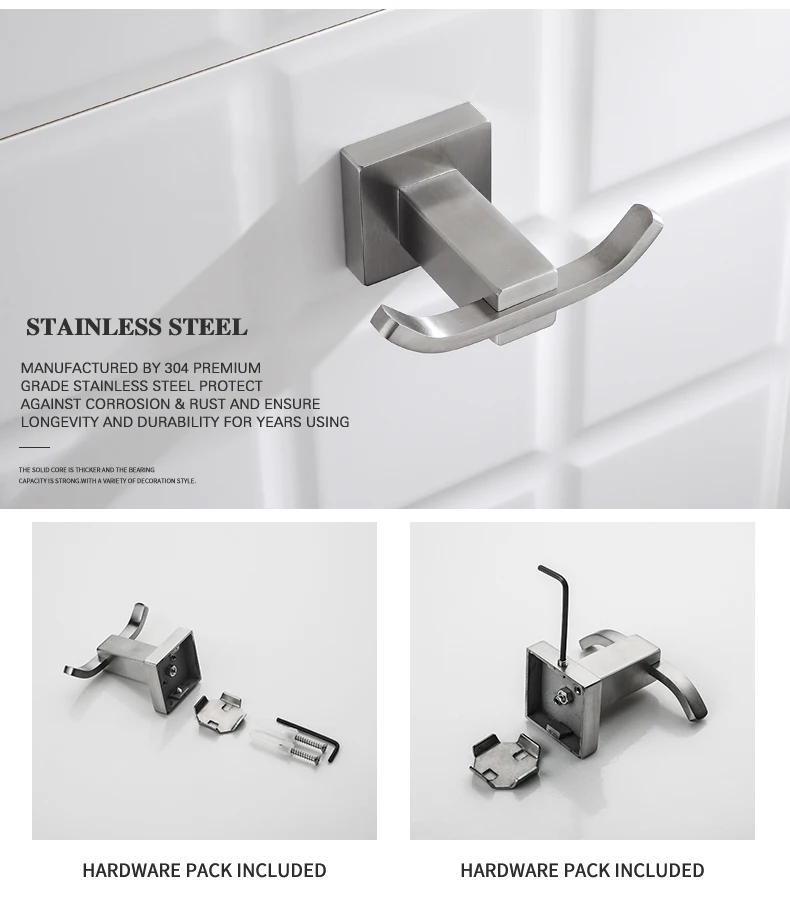 304 нержавеющая сталь, аксессуары для ванной комнаты, набор, двойной крючок, полотенце, кольцо, держатель для туалетной щетки, бумажный держатель для салфеток, настенный