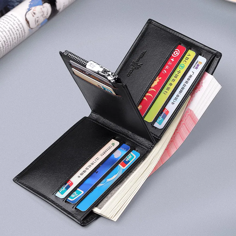 Мужской тонкий кошелек из натуральной кожи, мини-кошелек, повседневный дизайн, складной кошелек, брендовый короткий тонкий кошелек
