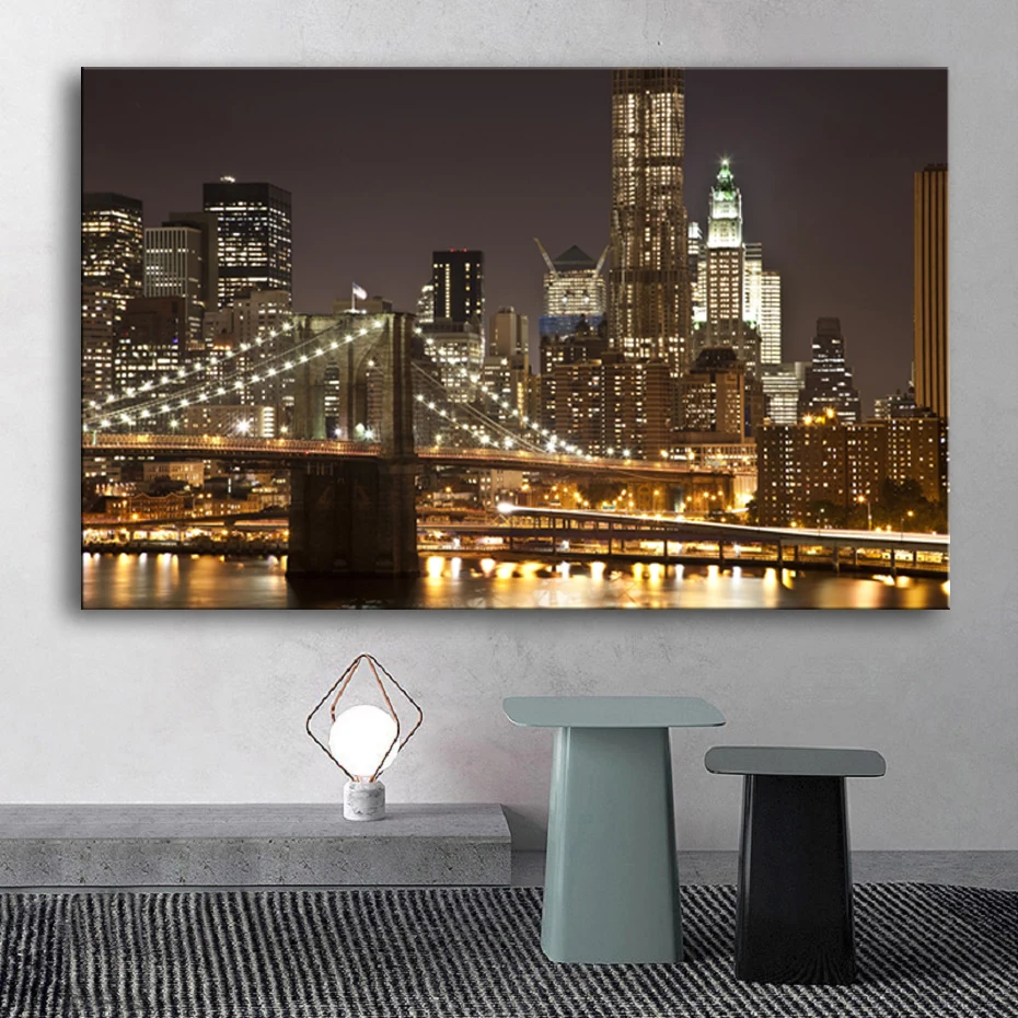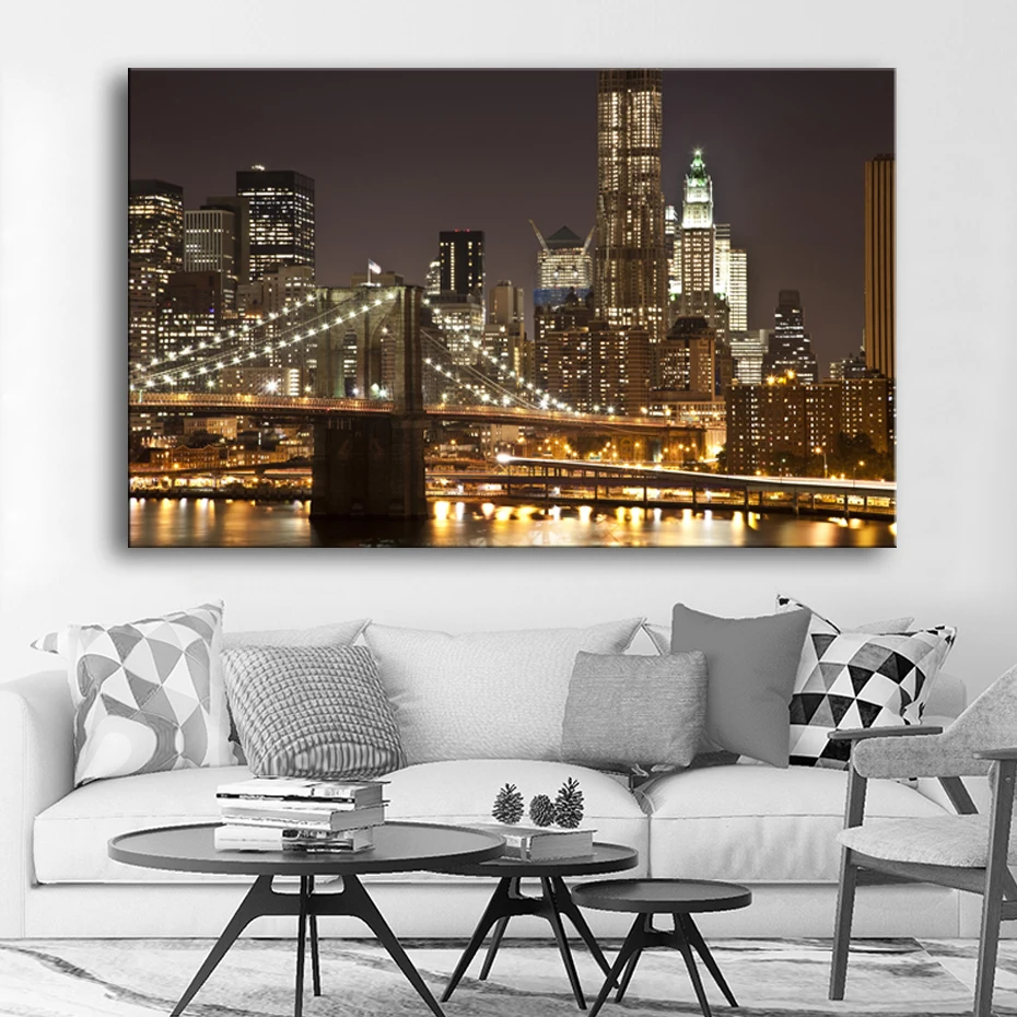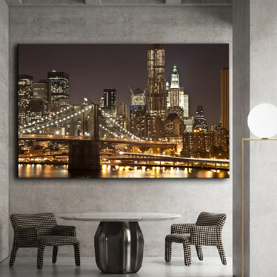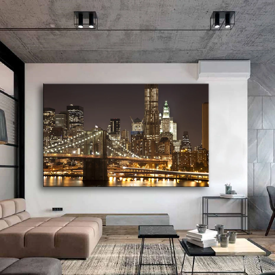 Плакаты на холсте, с изображением ночного пейзажа и Бруклинского моста