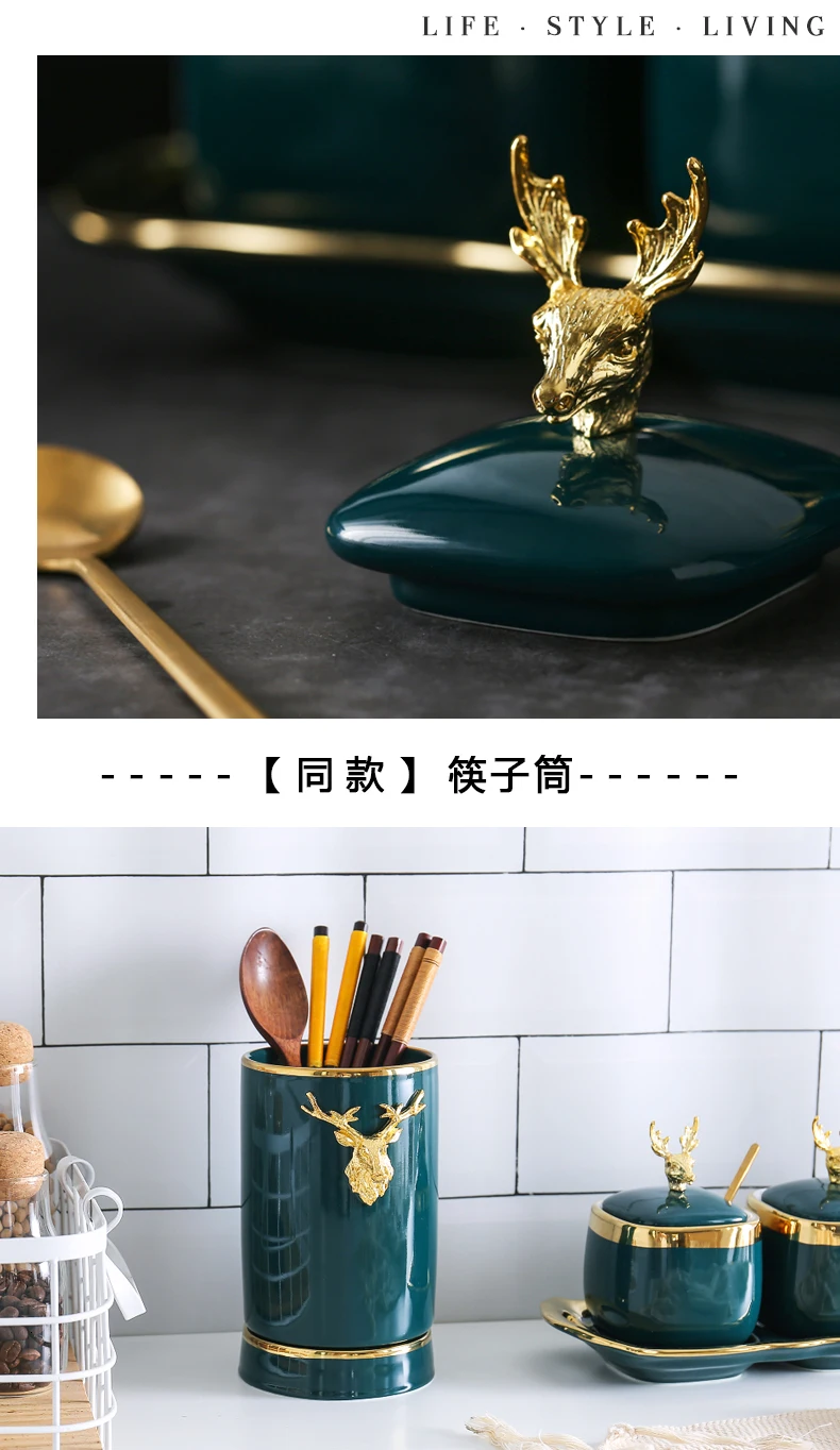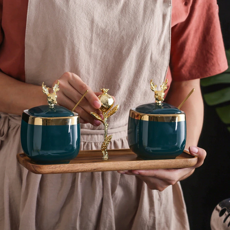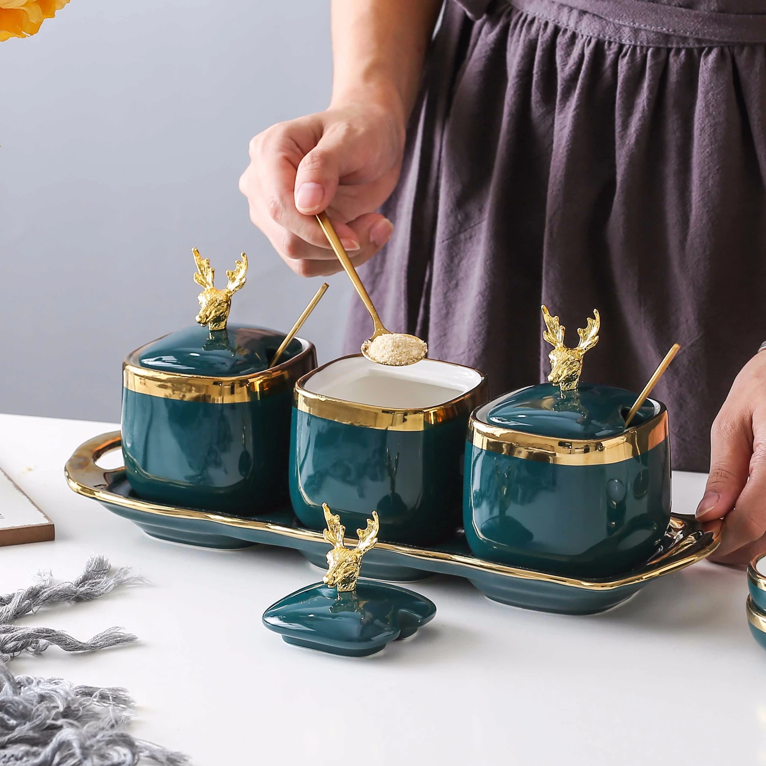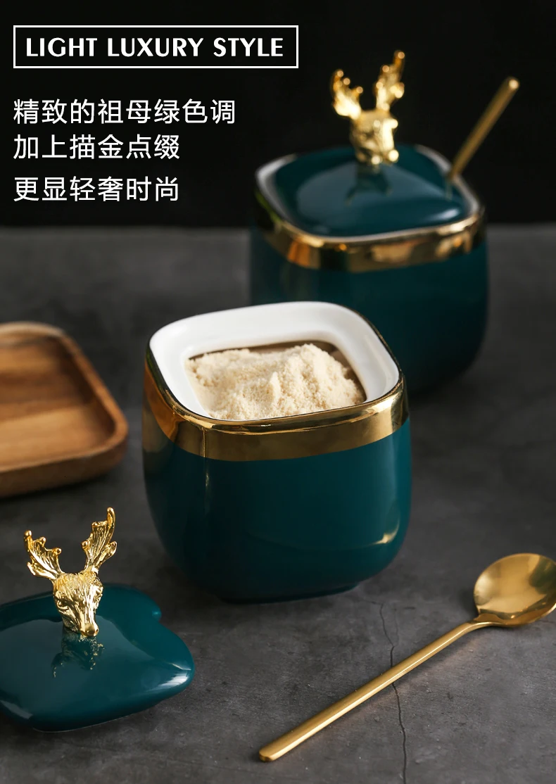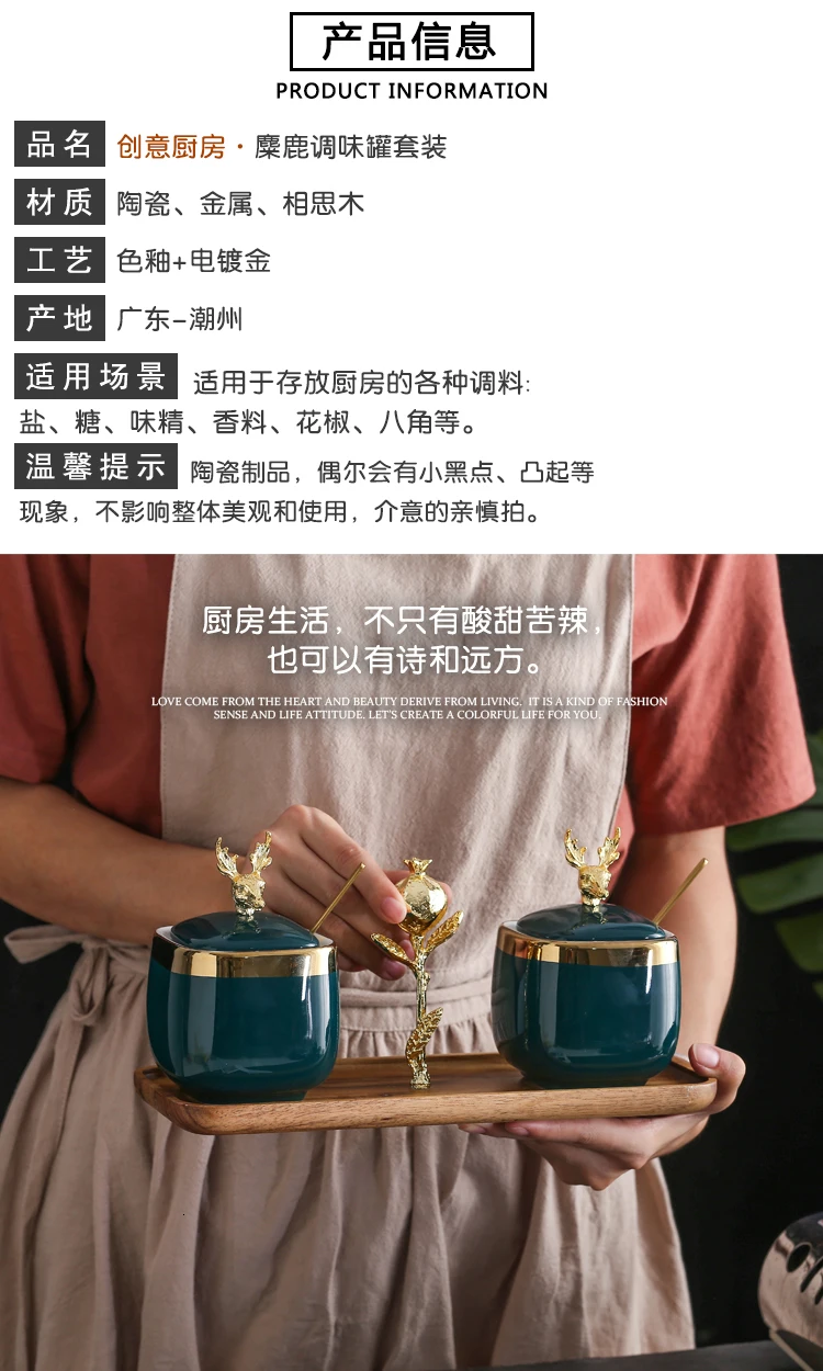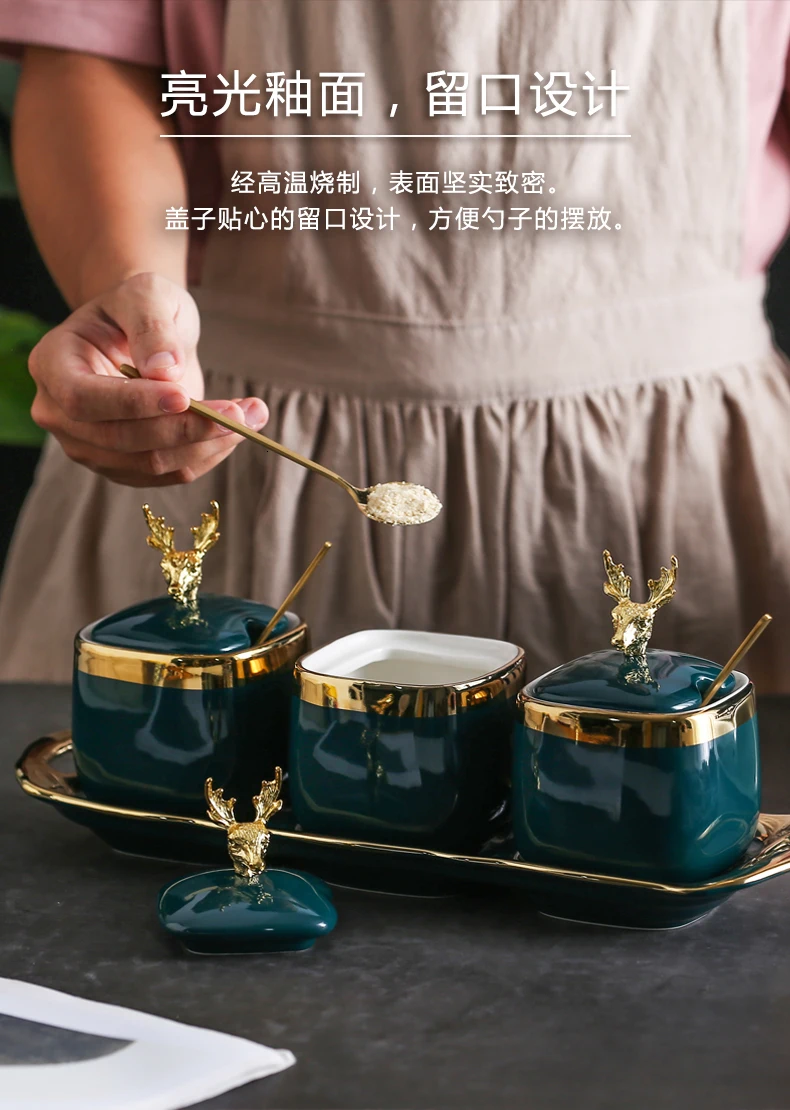 Креативная керамическая кухонная коробка для специй, Набор банок для специй, Североевропейский керамический бытовой MSG ящик для хранения соли и сахара