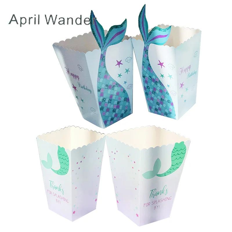 6 шт.лот, новый стиль, вечерние коробки для попкорна с хвостом русалки, голливудские фильмы, Снэк, попкорн, коробка для попкорна, Подарочная коробка, вечерние принадлежности, коробка для попкорна