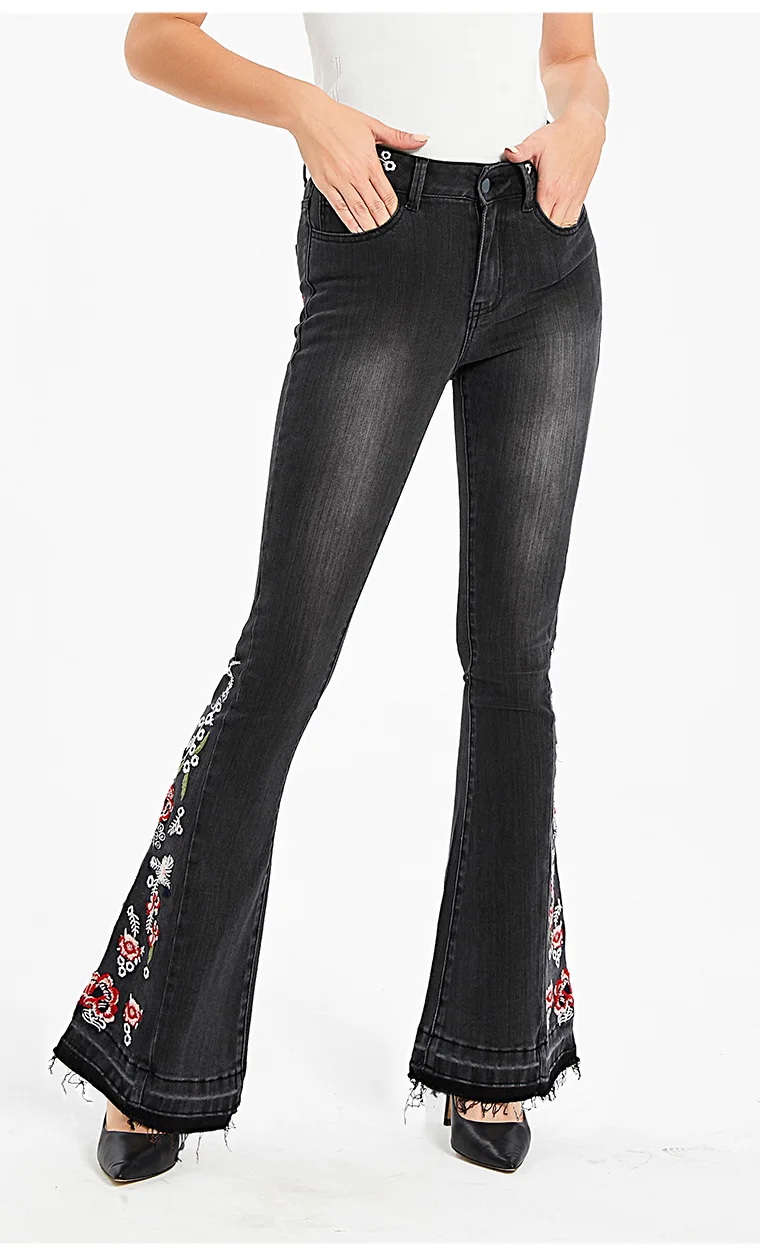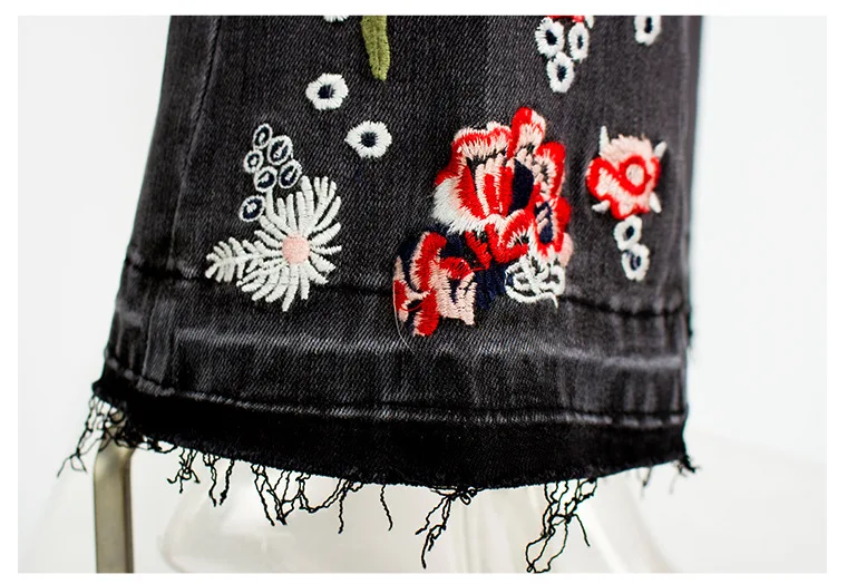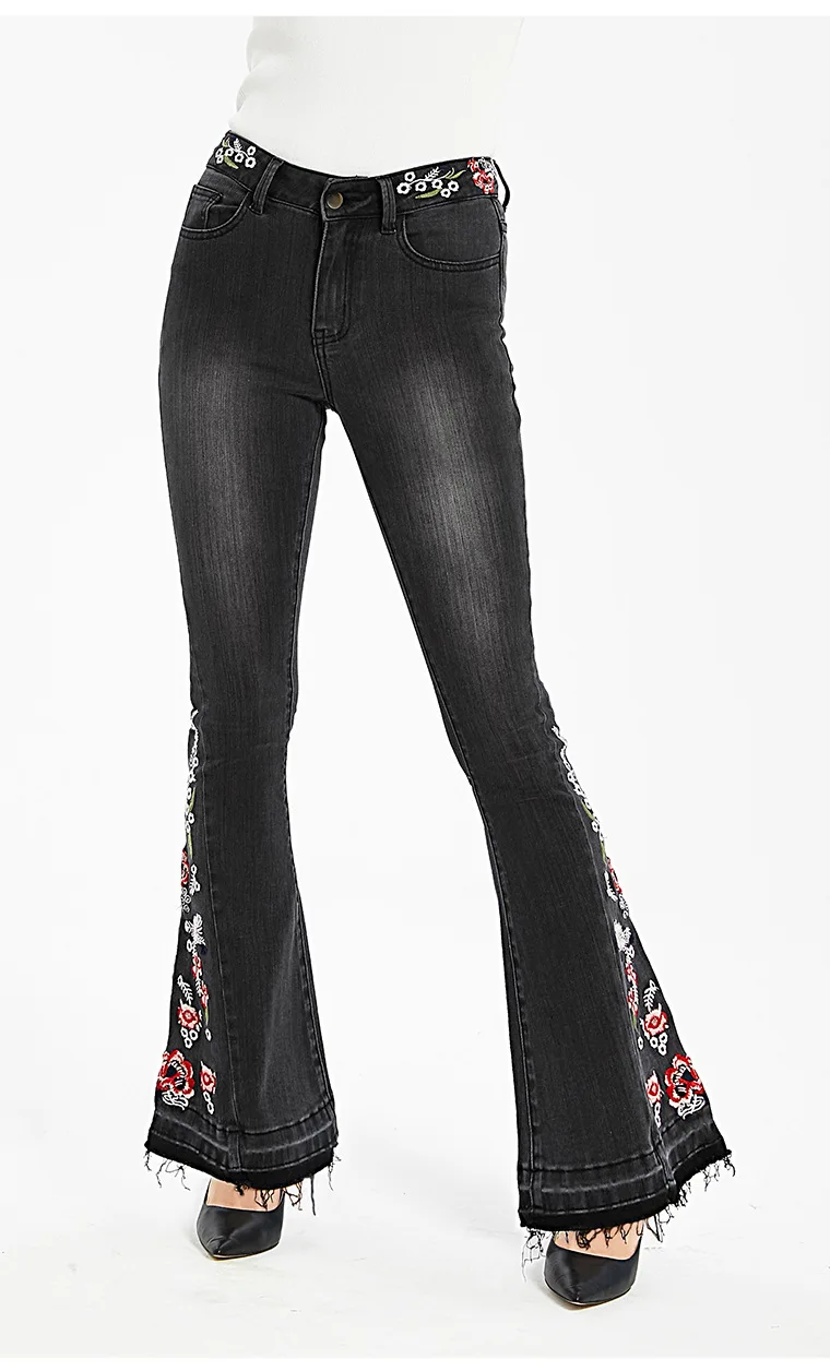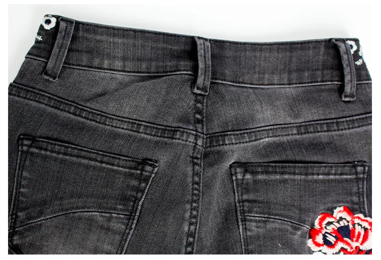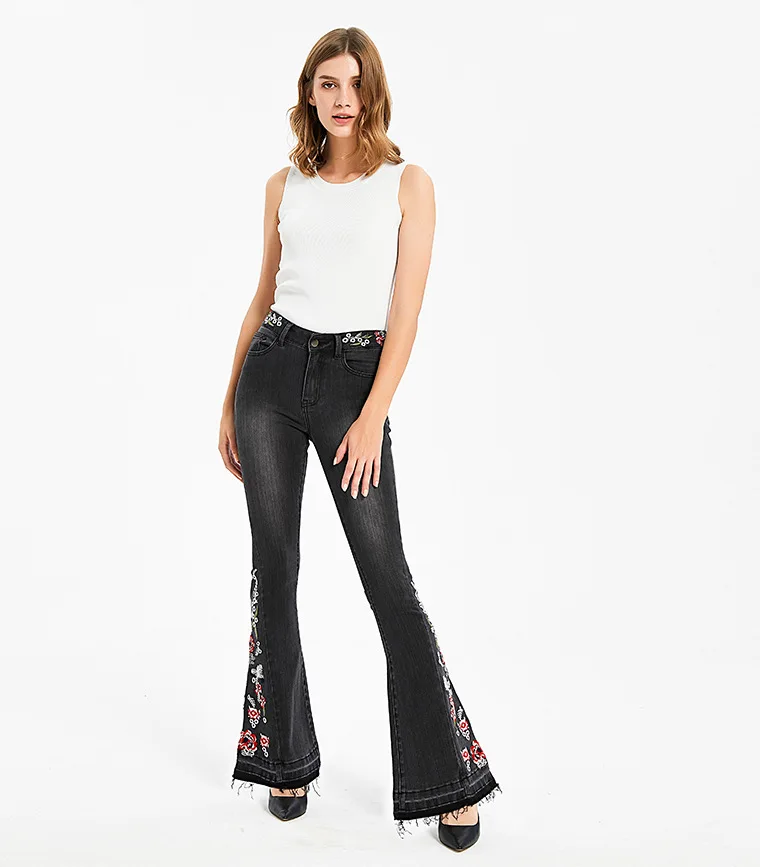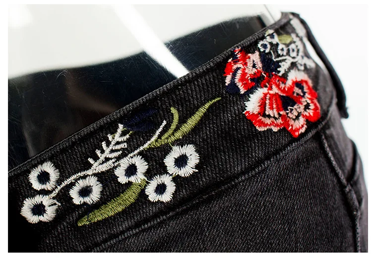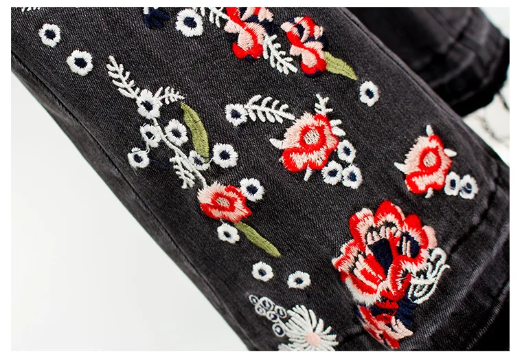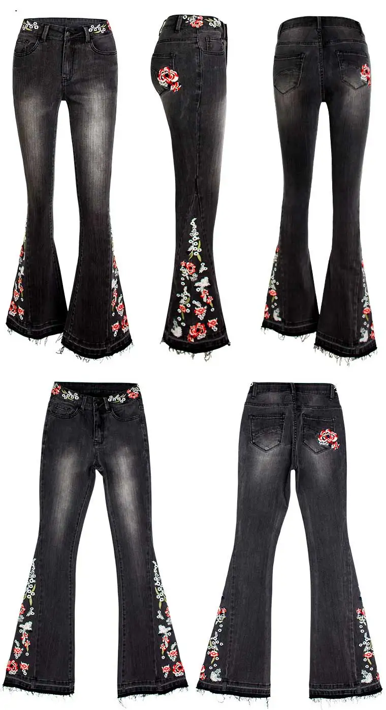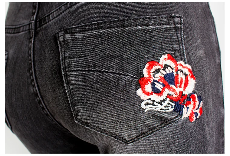 Джинсы женские эластичные, широкие, с вышивкой, большого размера #01