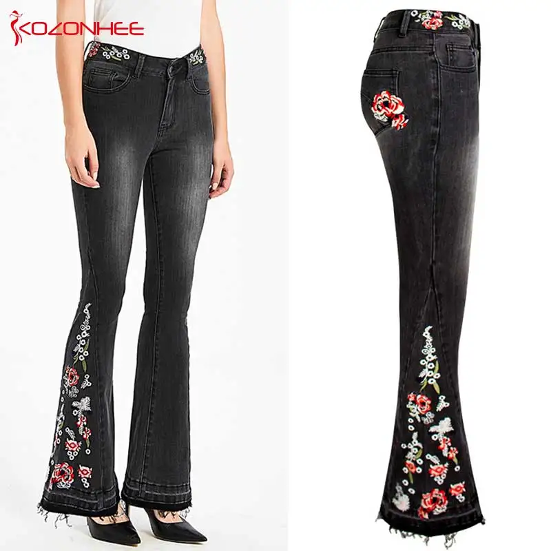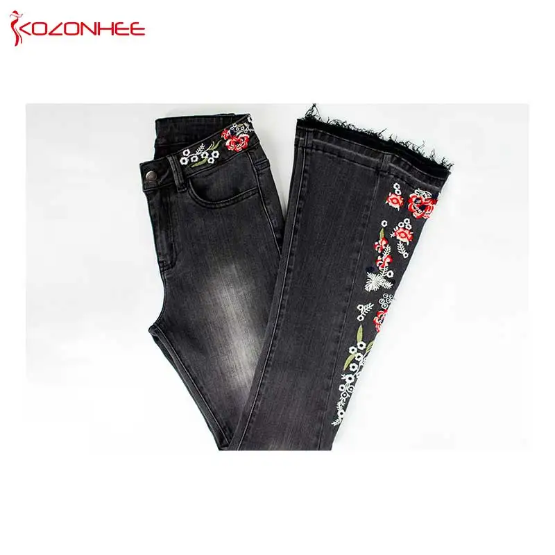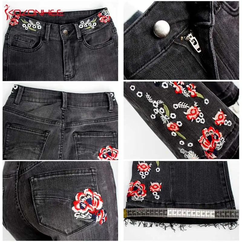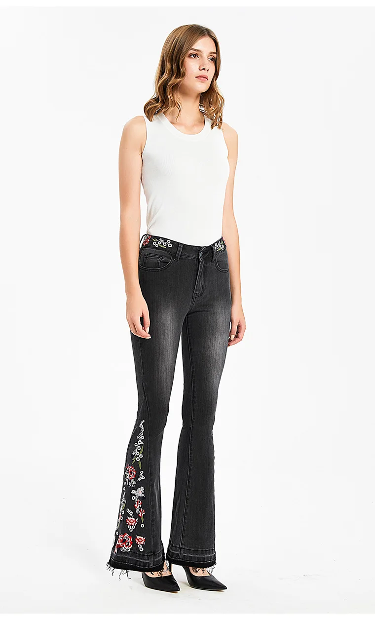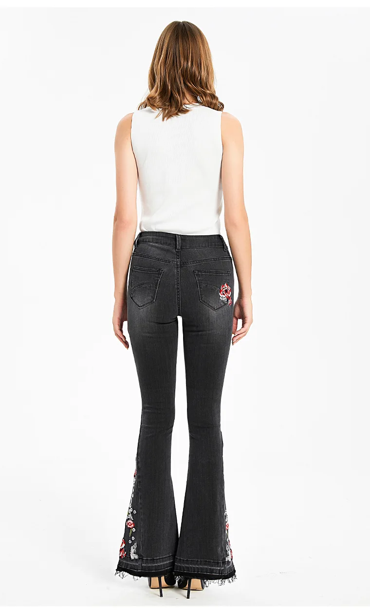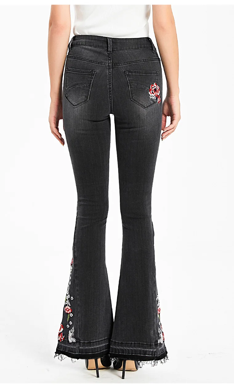 Джинсы женские эластичные, широкие, с вышивкой, большого размера #01