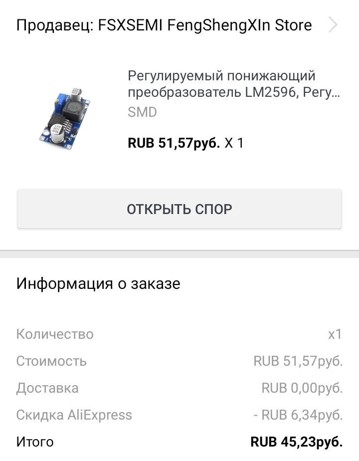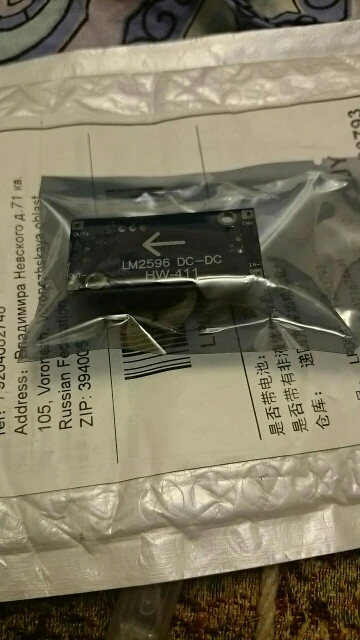 LM2596 Регулируемый понижающий модуль 3А 05.09.2020 Заказ. 16.10.2020 Спасибо, товар получен! -------- 05.09.2020 Order. 16.10.2020 Thank you, the goods have already received!. -------- Екатеринбург, Урал, Россия. Yekaterinburg, Ural, Russia.
