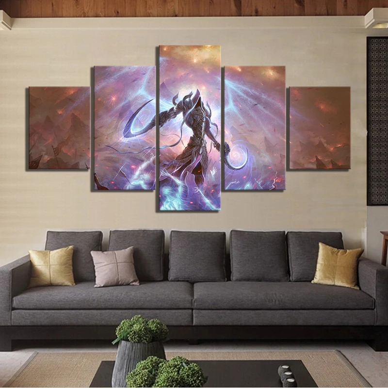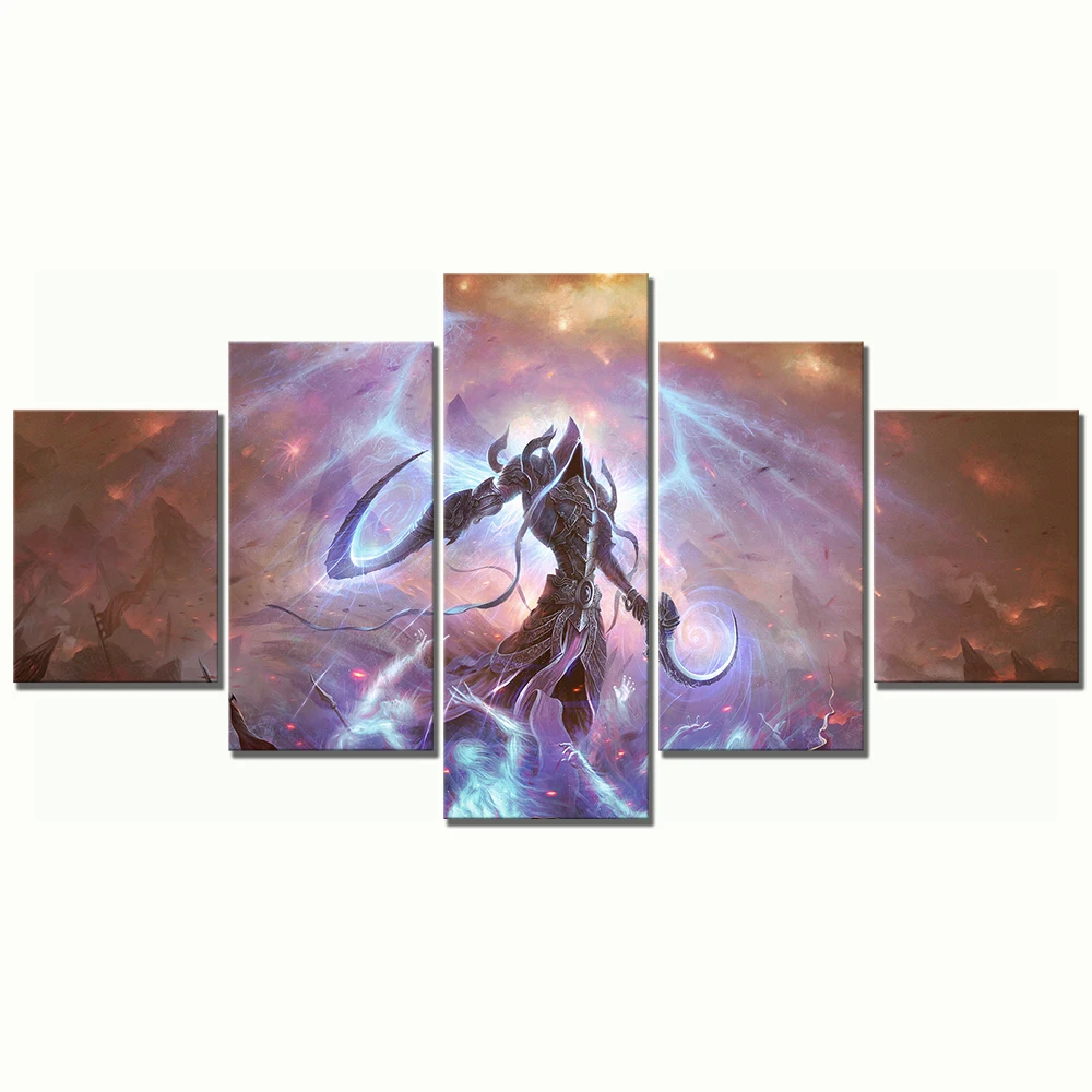 Модульные плакаты, настенное изображение, холст, Диабло 3, игра, украшение для дома, 5 панелей, картины, HD печать, Офисная комната, рамки картины