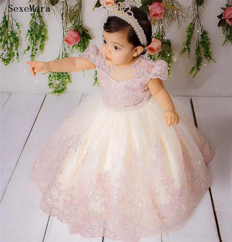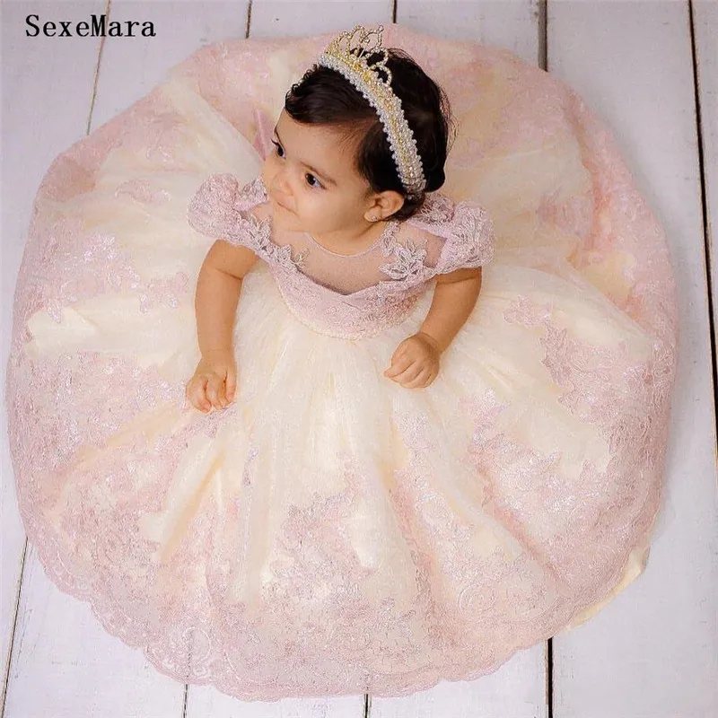 Милое розовое кружевное платье с цветами для девочек, детское фатиновое платье на день рождения, детская одежда для свадьбы и вечеринки, с коротким рукавом