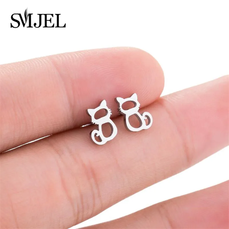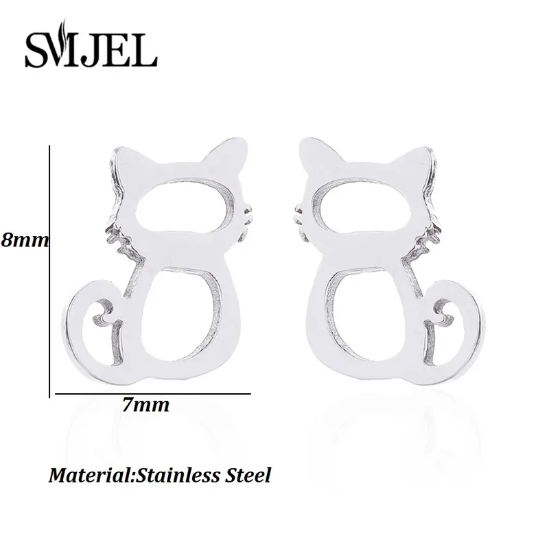 SMJEL, модные серьги в виде животных, ювелирные изделия для детей, милые черные полые серьги-гвоздики в виде кота из нержавеющей стали, лучший подарок для женщин, Gir Brincos