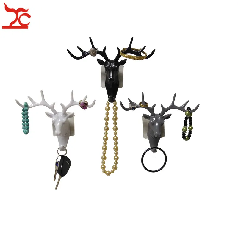 Вешалка с крючком в виде головы оленя, слона, ювелирных изделий, кольца, ожерелья, браслета, настенной двери, шкафа, Декоративная вешалка с крючком