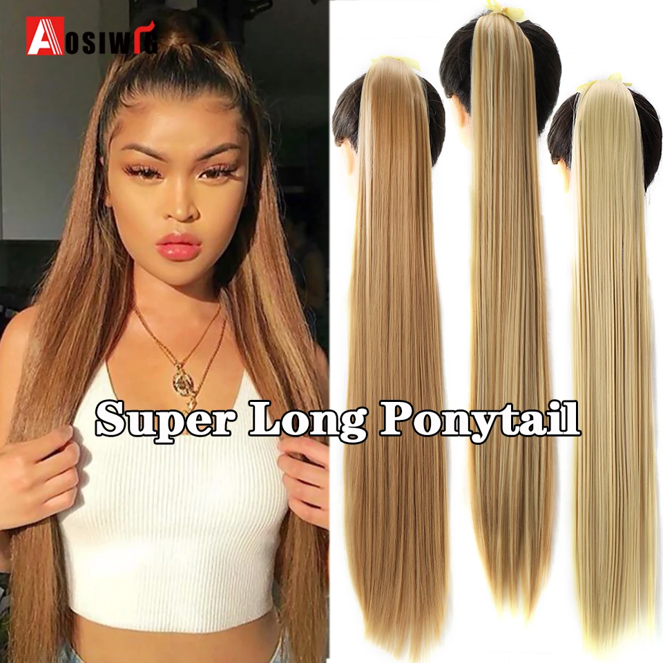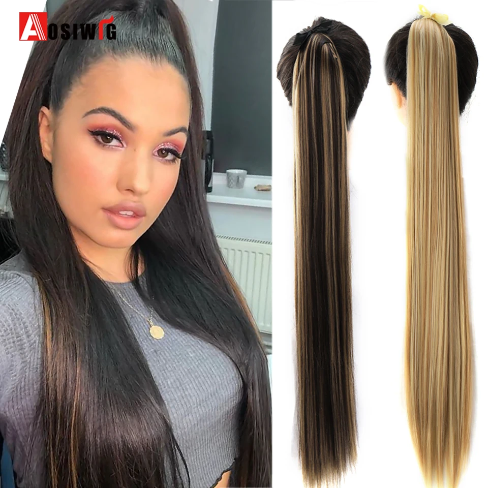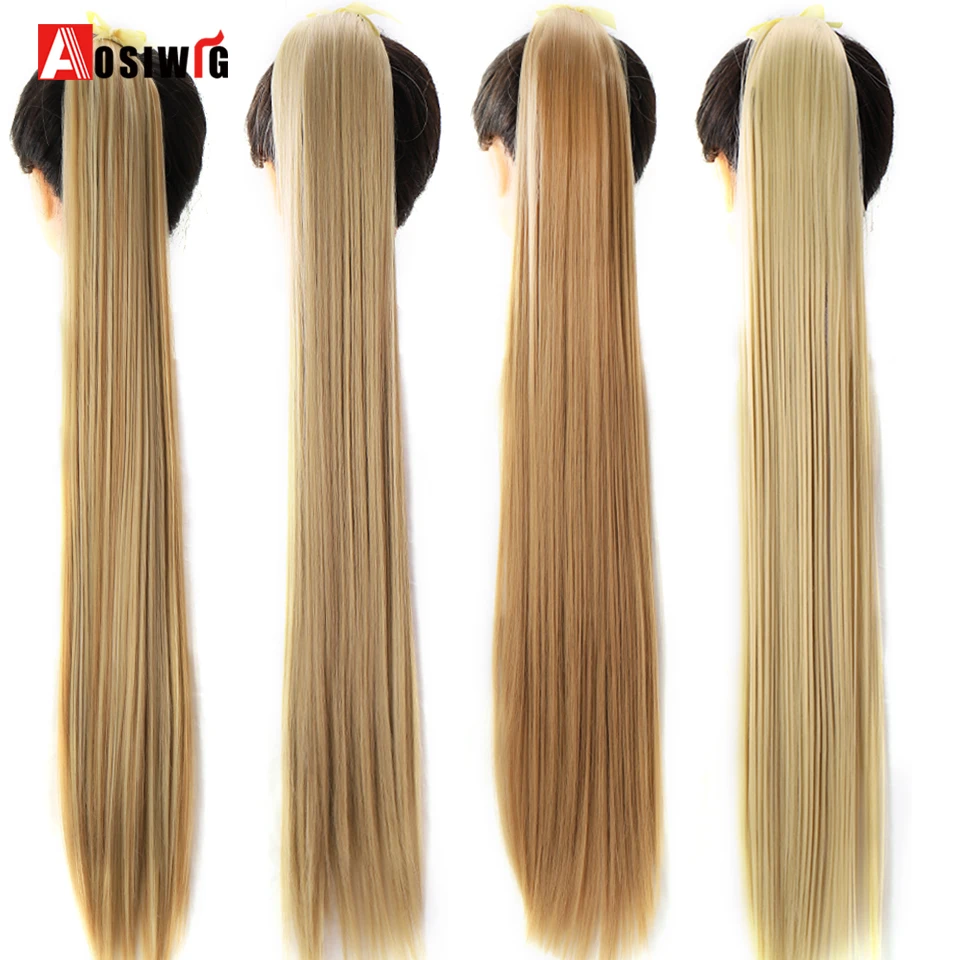 AOSIWIG длинные прямые высокие температуры Синтетический шнурок конский хвост клипса в пони хвост расширение Шиньон матовый парик для женщин