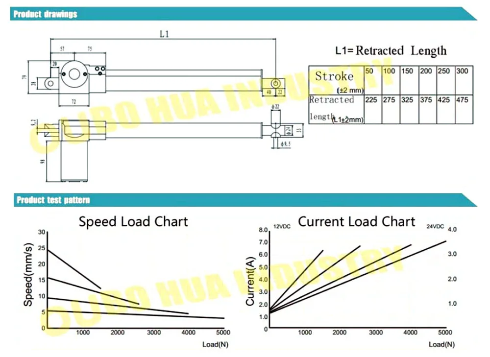 DC 12 В/24 В 500N линейный привод, Максимальный ход подъема, электрический двигатель для медицинского автомобиля, максимальный толчок/тяга, 50 кг
