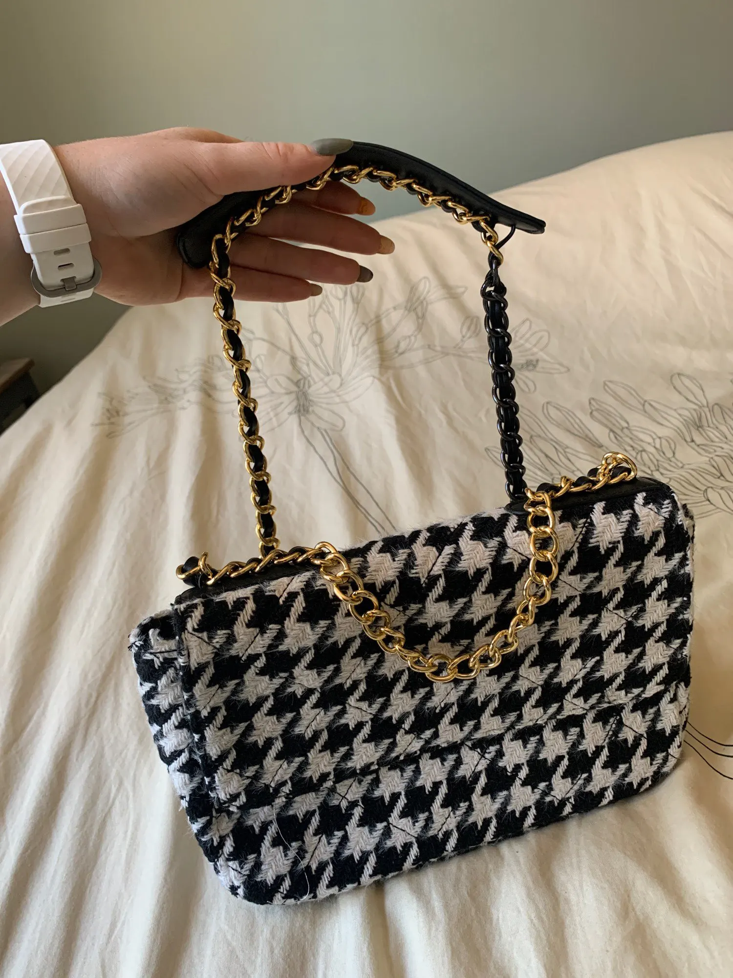 Сумка низкого качества, узор не прямой, а цепочка неисправна. Я не рекомендую этот товар.