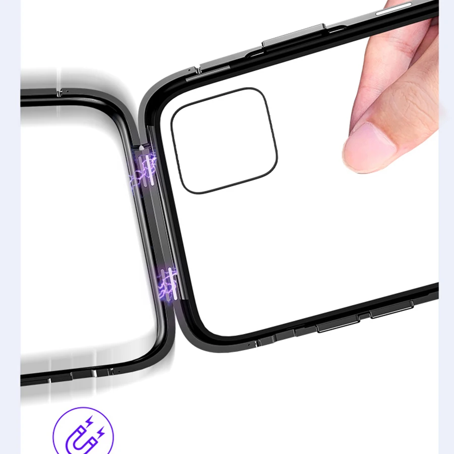 Металлический магнитный адсорбирующий чехол для iPhone 11 Pro Max, чехол, закаленное стекло, магнитные чехлы для iPhone XS XR 11Pro X SE 2020 7 8