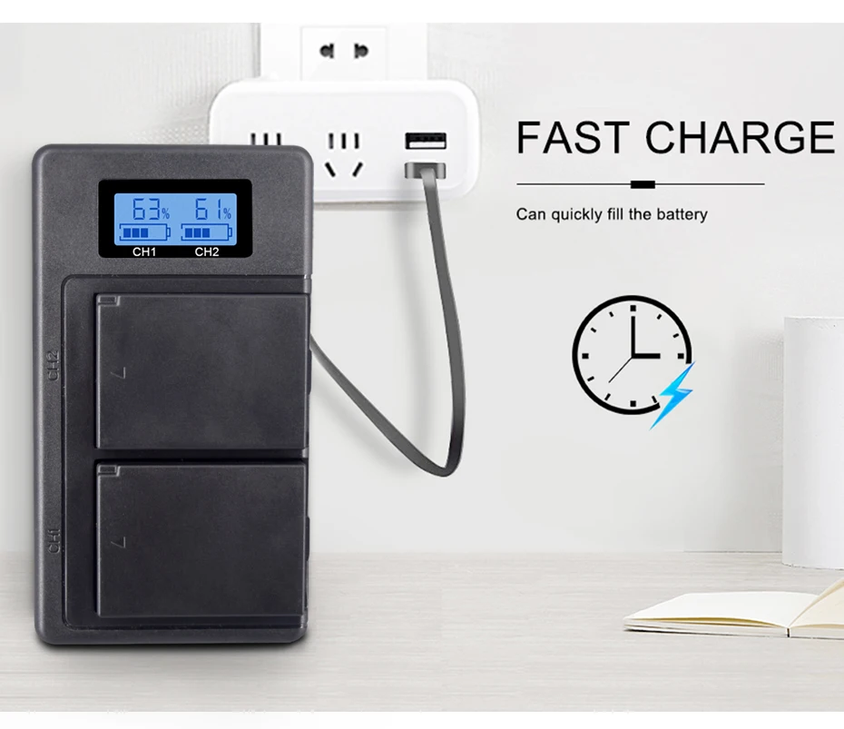 Зарядное устройство с двумя USB-портами и ЖК-дисплеем для камеры Ca...