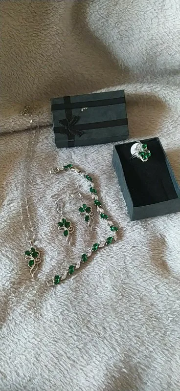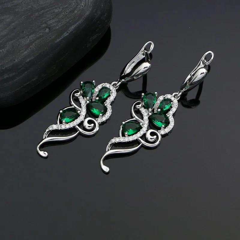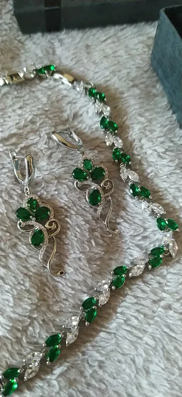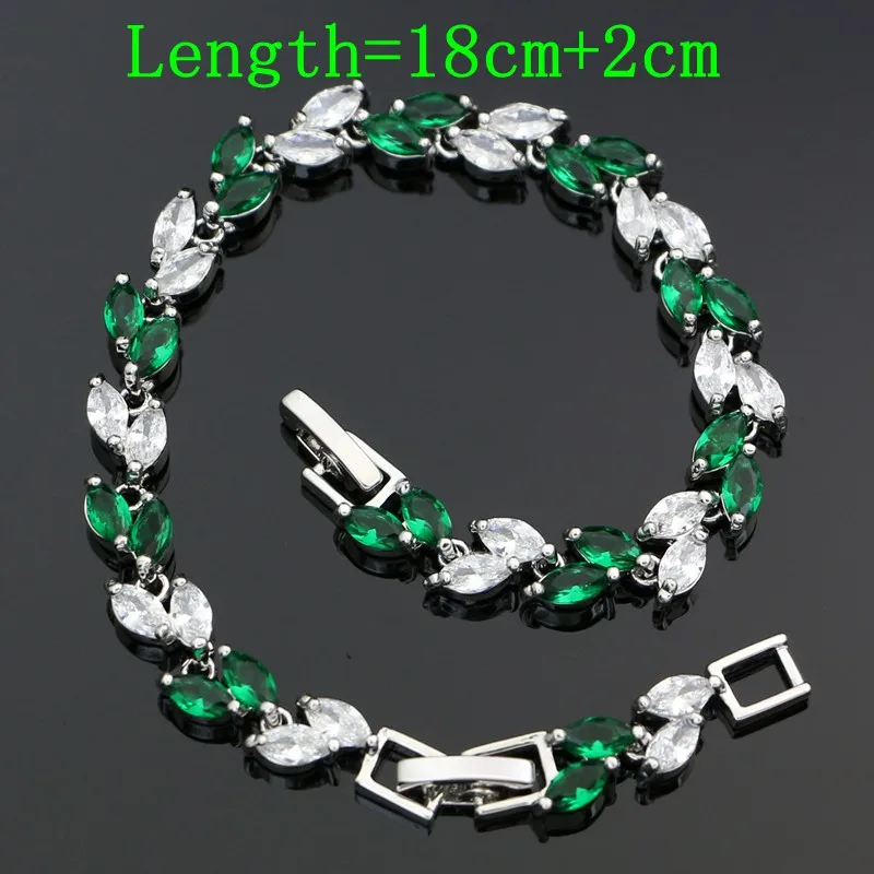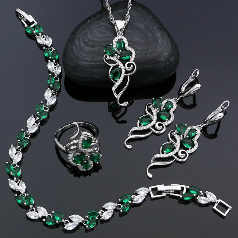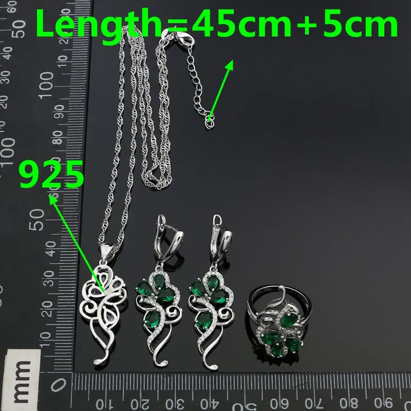 Комплект свадебных украшений из серебра 925 пробы с Зелеными камнями для женщин, серьги, подвеска, кольцо, браслет, ожерелье