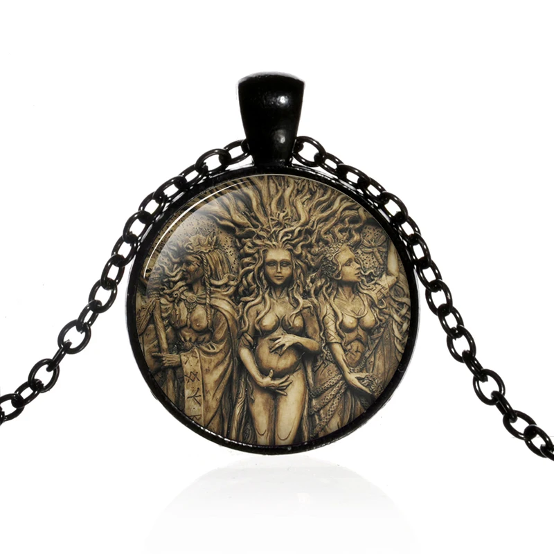 Винтажный амулет Wiccan в форме тройной Луны, богини, кабошон, стек...