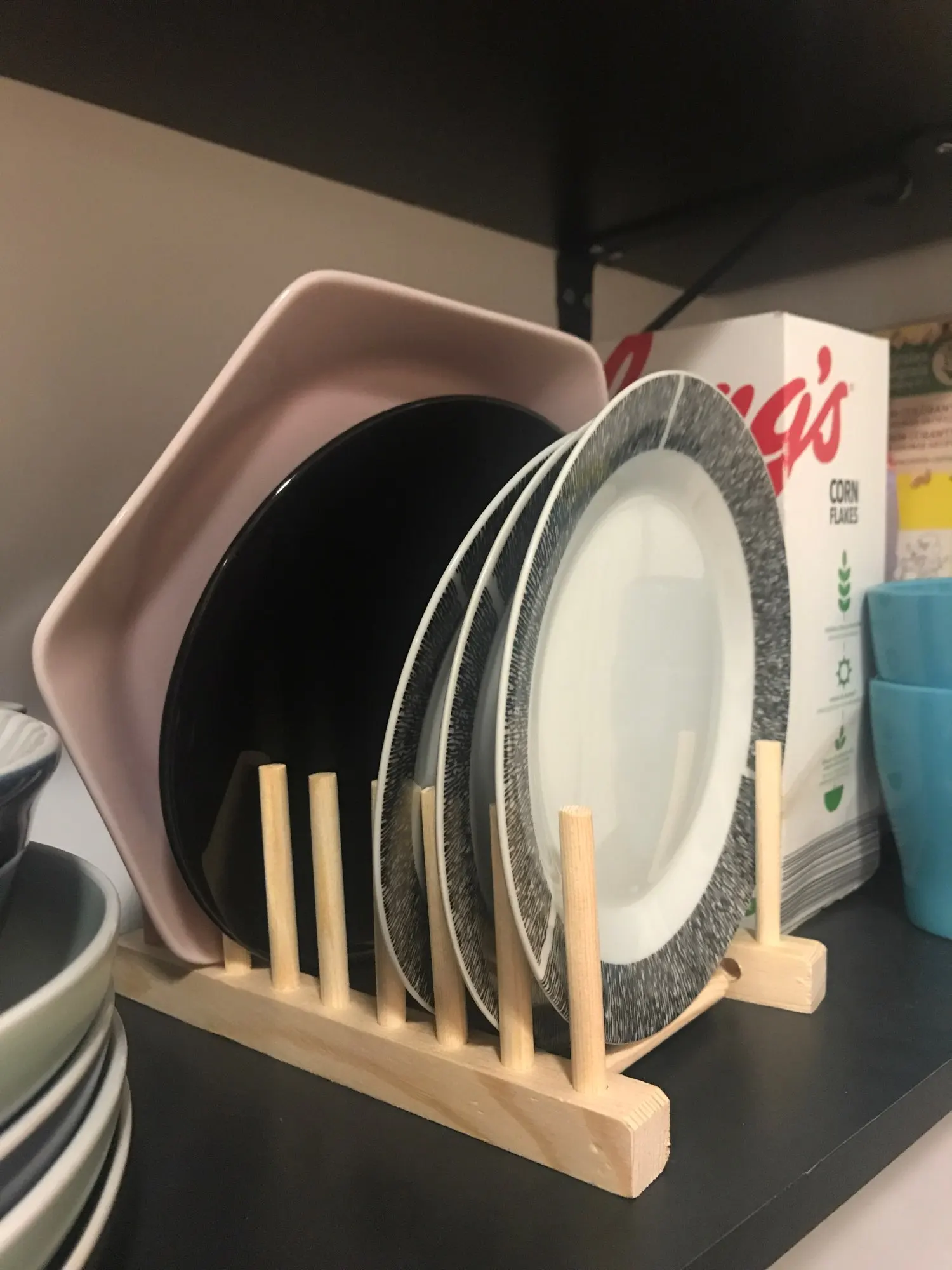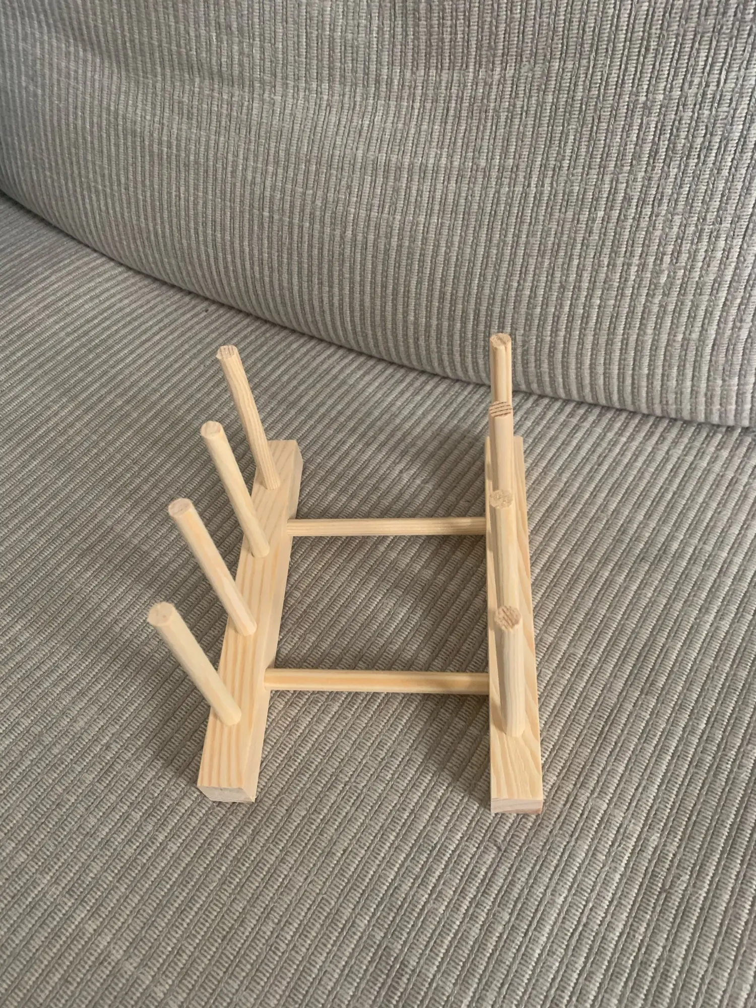 Отличная подставка для тарелок. Рекомендую. Слегка подполировала наждачной планочки для соединения двух половинок. Также слегка покрыла лаком, чтобы защитить натуральную структуру дерева. Получилось отлично!Спасибо.