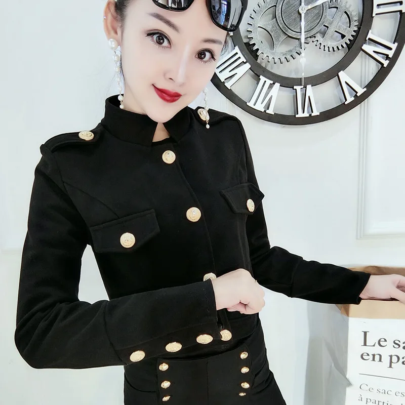 Женский однобортный Топ с воротником-стойкой, модная черная короткая куртка размера плюс 3XL на весну и осень