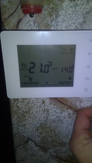 пока не разобрался , термометр показывает не правильную температура в комнате, градусов на 10, а так работает, включается по выставленной температуре