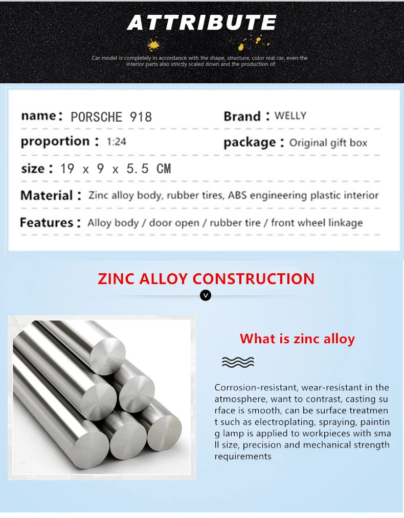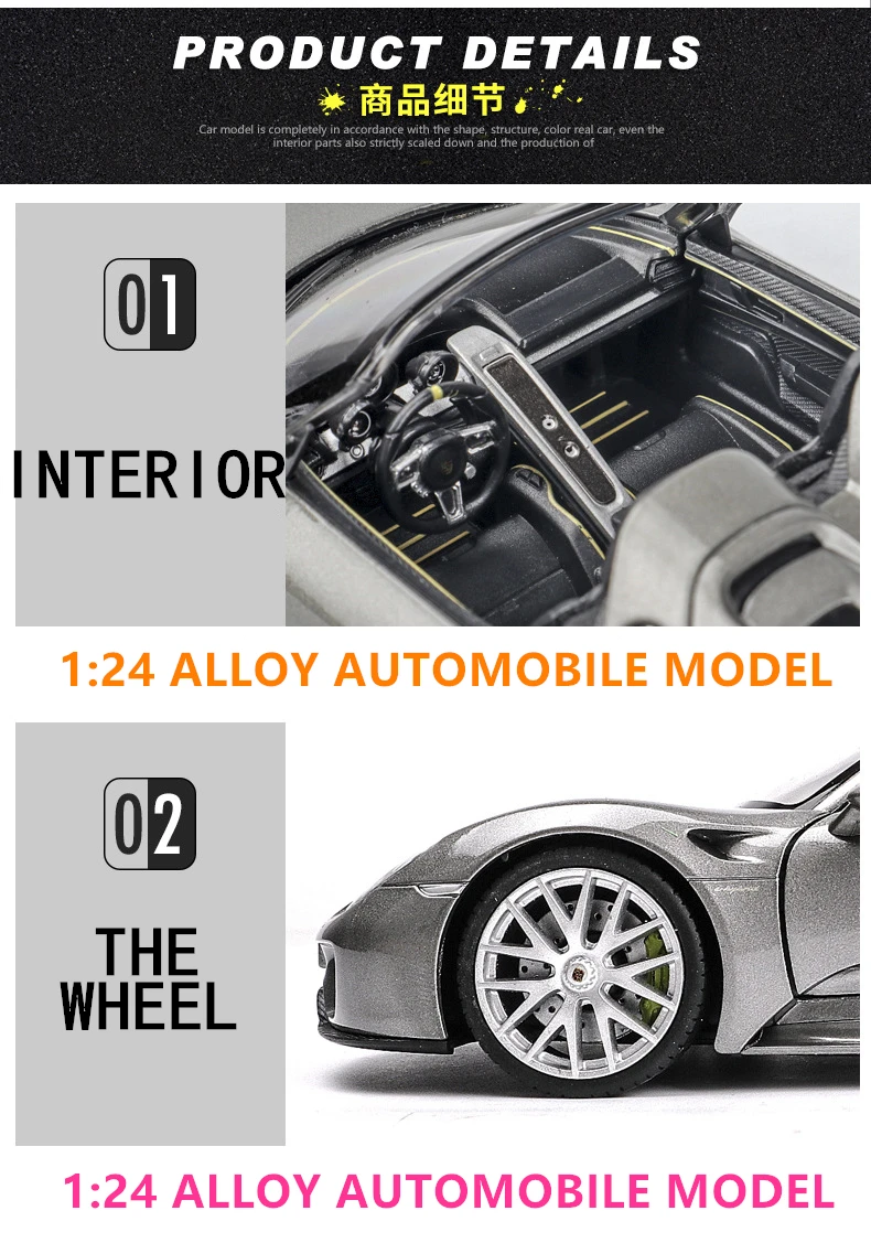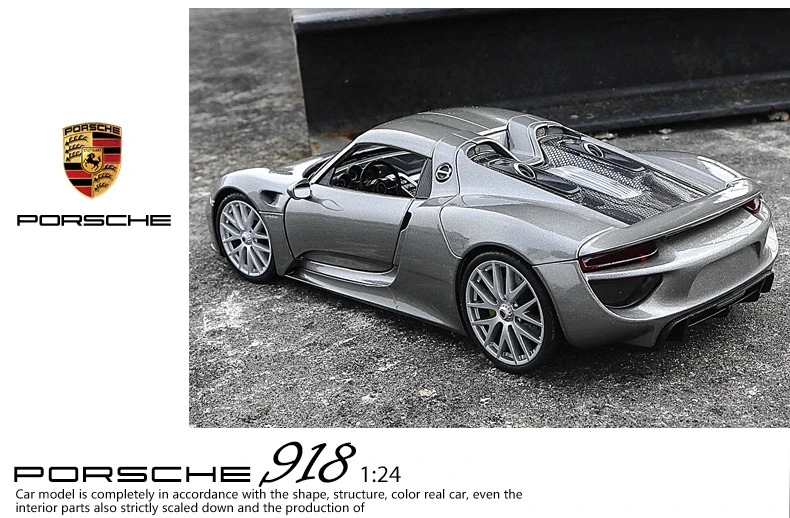 Модель автомобиля welly 1:24 Porsche 918 spyder, модель автомобиля из сплава, коллекция украшений для автомобиля, Подарочная игрушка, литье под давлением