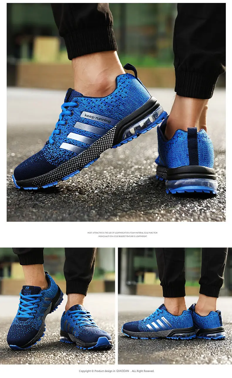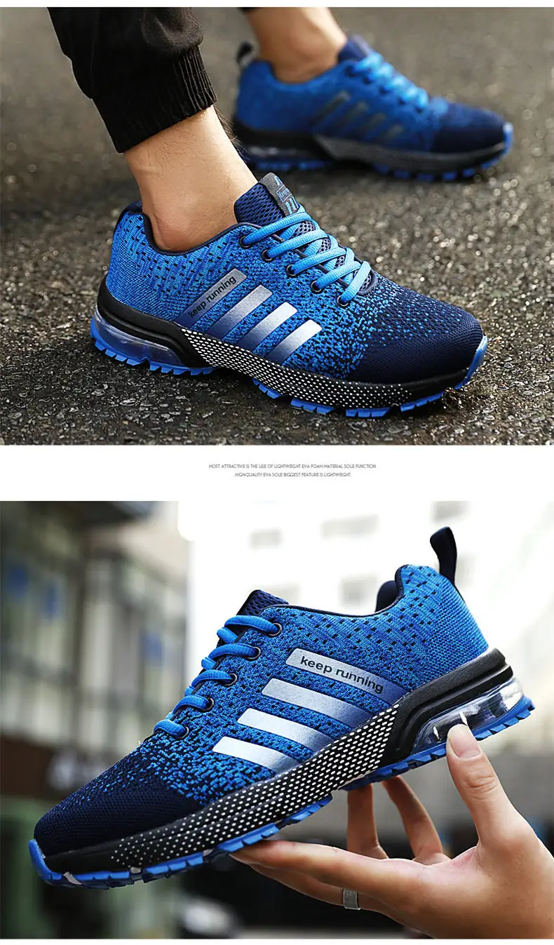 Воздухопроницаемая Мужская обувь для бега на открытом воздухе, вязаные кроссовки синего цвета, недорогая спортивная обувь, мужские кроссовки, zapatillas hombre